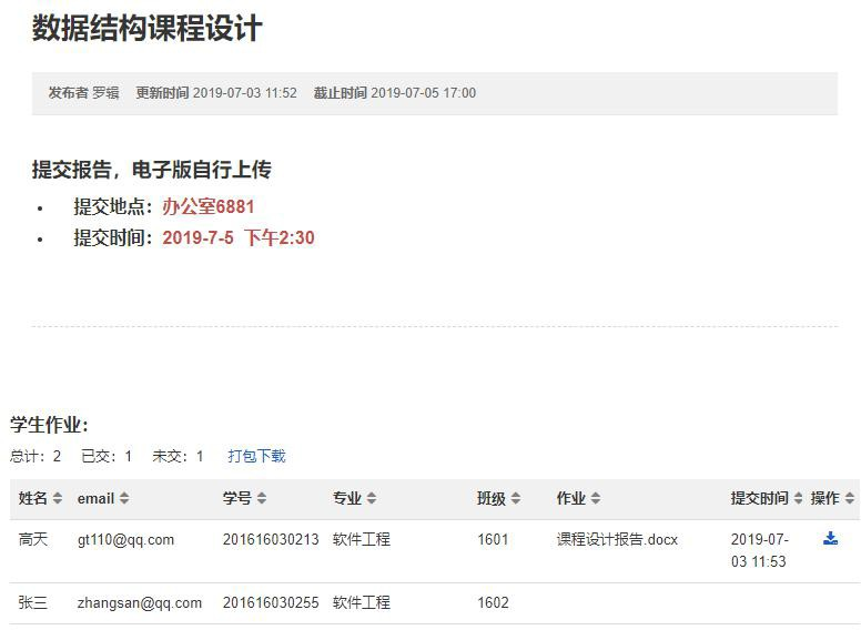 本系统为教师和学生提供便捷的课堂管理功能,教师可通过此系统发布公告、发布作业、收作业、上传教学资源,学生可通过此系统查看公告、查看作业、上传作业、下载资源。此系统含有登录注册模块、课堂管理模块、公告管理模块、作业管理模块、资源管理模块、学生管理模块等。