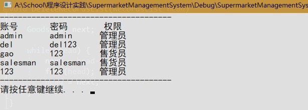 管理员用户可浏览系统内所有的用户的账号、密码、权限类别,可添加用户,可删除用户。