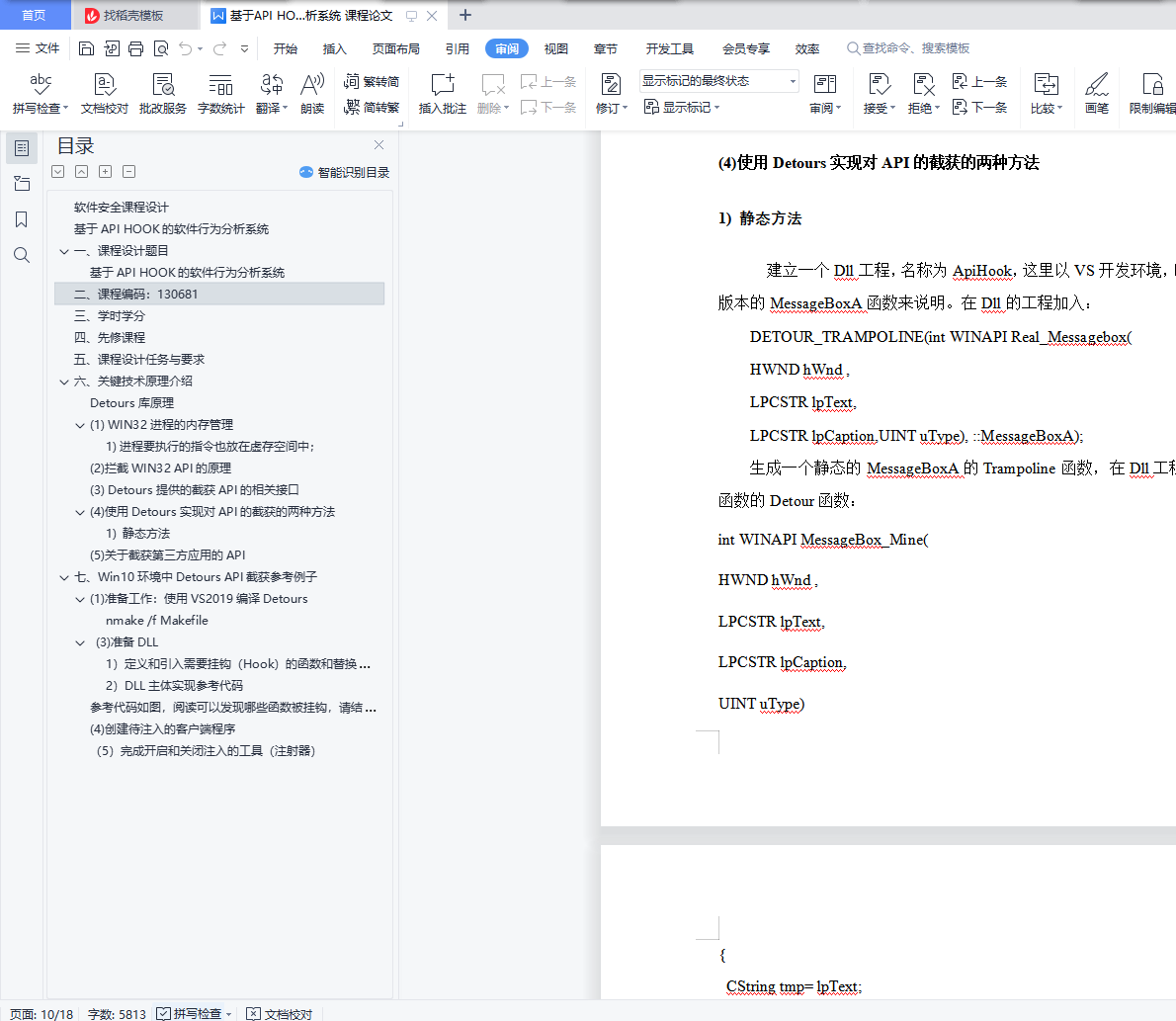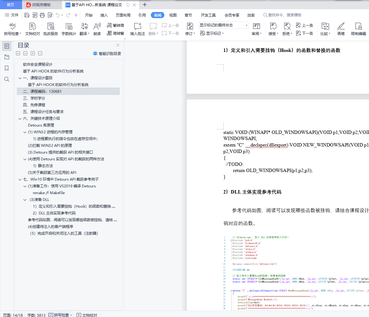 参考代码如图,阅读可以发现哪些函数被挂钩,请结合课程设计的要求,挂钩对应的函数。