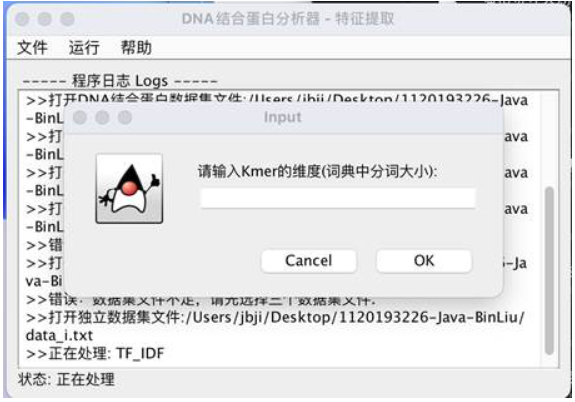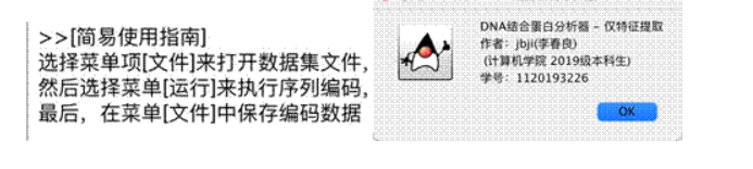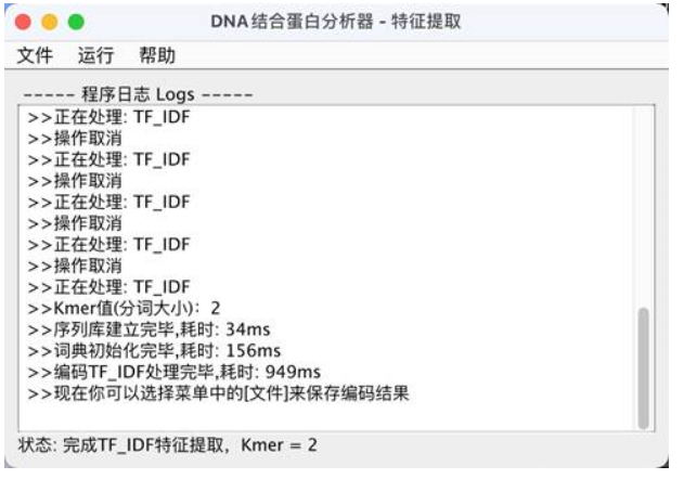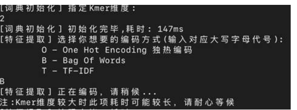 项目初步实现的功能包括,运用Kmer分词方法创建词典,给出了包括One Hot Encoding 、 Bag Of Words 、 TF- IDF在内的三种特征提取方法。用户可以通过有限的图形交互界面来实现基于文件输入的交互,并获得向量序列的文件输出。