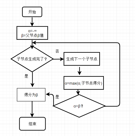 由上述的特性,博弈树的搜索过程又被称为minimax搜索。博弈双方行动逐层交替,将评价函数值看做一方的分数,在那一方行动时要让分数尽可能的大,这样的节点被称为Max节点;在另一方行动时要让分数尽可能的小,这样的节点被称为Min节点。