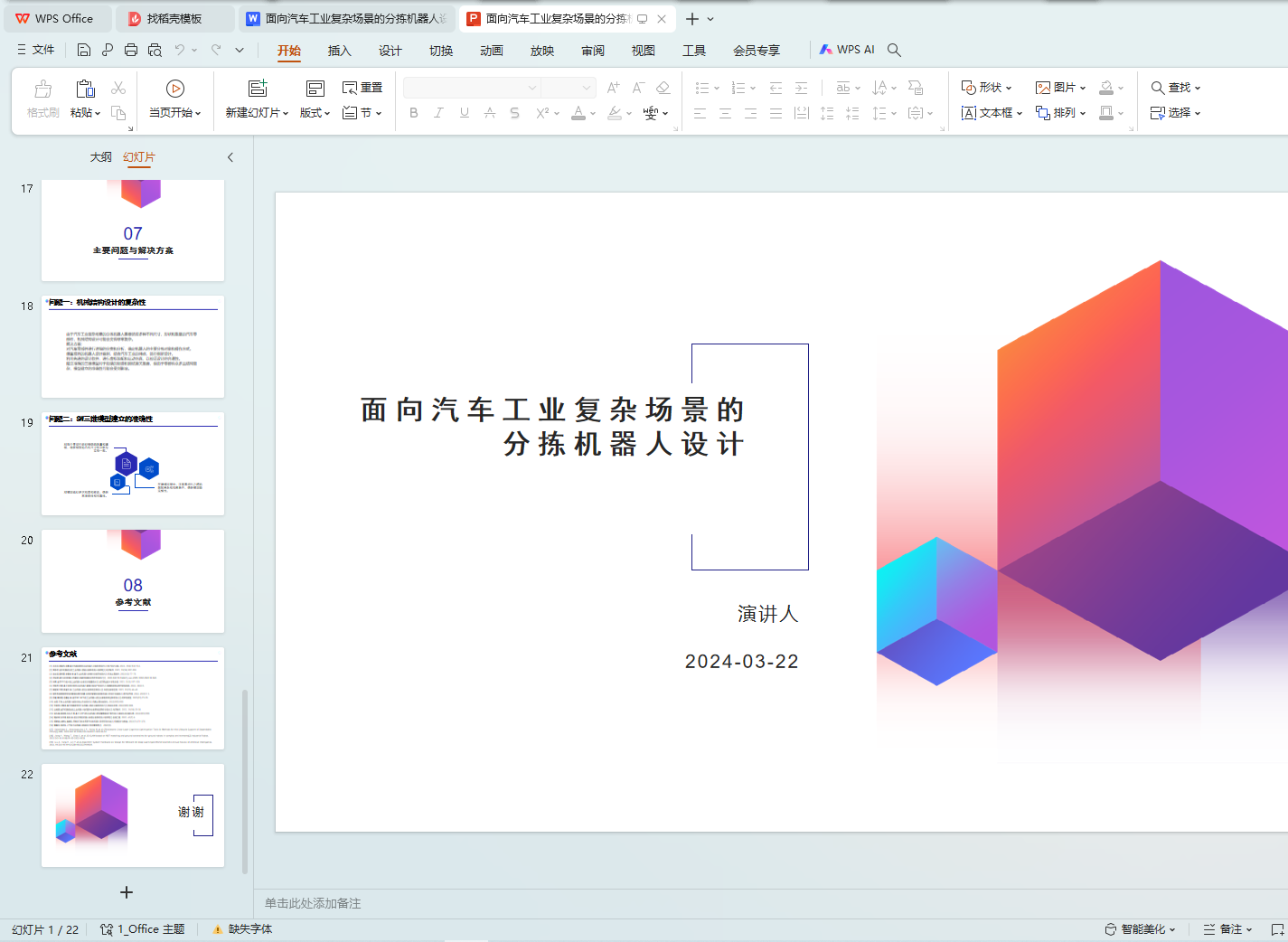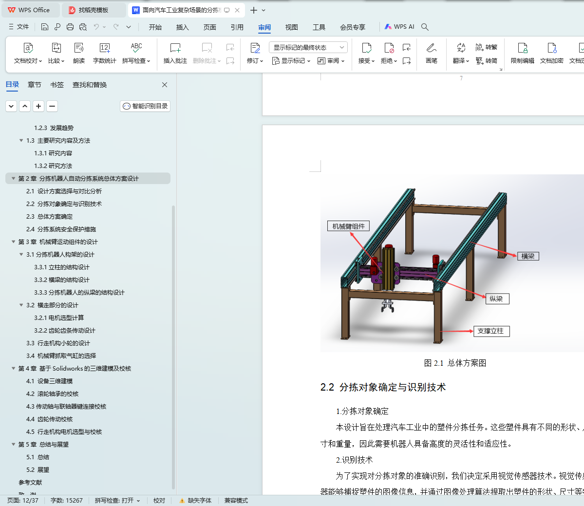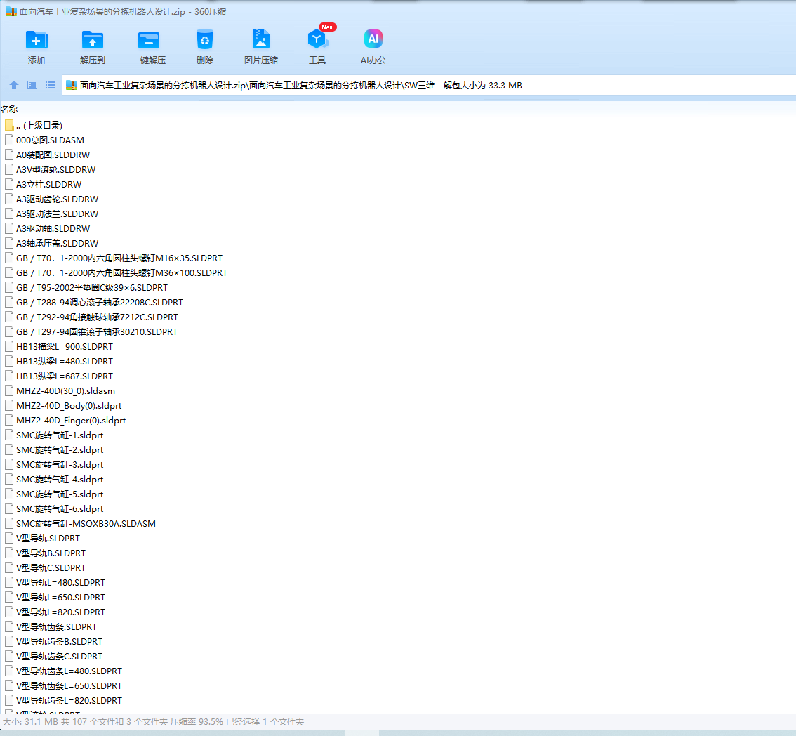 本选题源于汽车工业对高效、精准分拣技术的持续追求。随着汽车产业的快速发展,对自动化、智能化生产线的需求日益迫切。特别是面对复杂多变的分拣场景,传统的人工分拣方式已难以满足生产效率和精度的要求。因此,本课题致力于设计一款面向汽车工业复杂场景的分拣机器人,通过深入研究其机械臂的主体结构,实现自动化、高效化的零件抓取与分拣,以推动汽车工业的智能化发展,提高生产效率,降低人工成本。