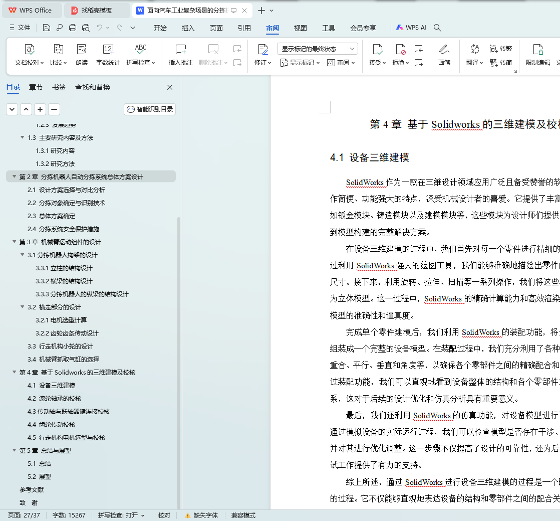 关键词:分拣机器人;机械臂设计;SolidWorks建模;运动仿真;驱动与传动方式
