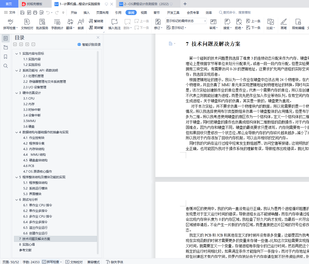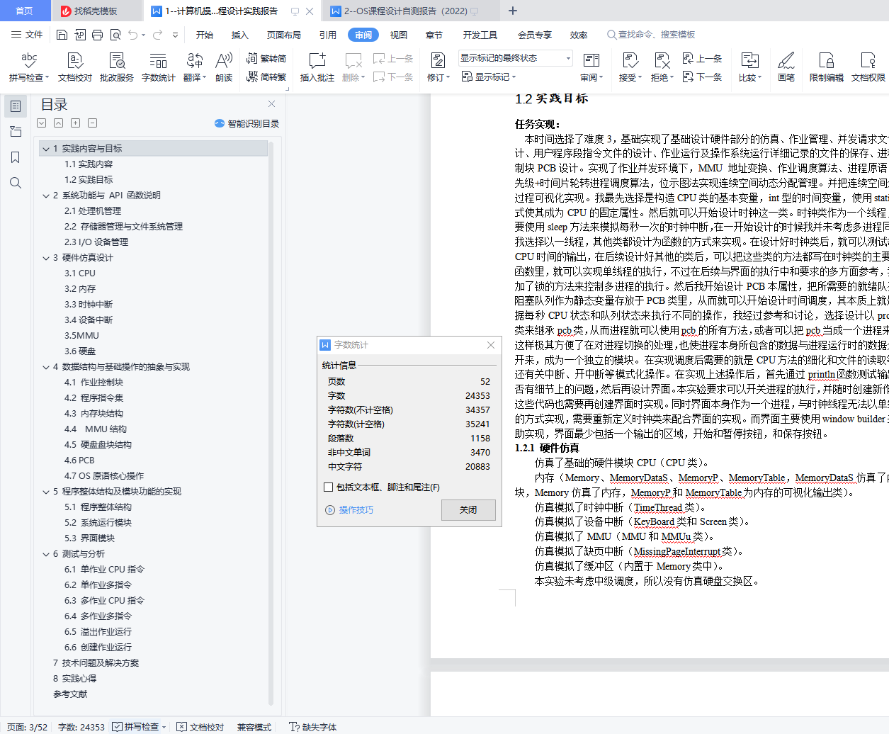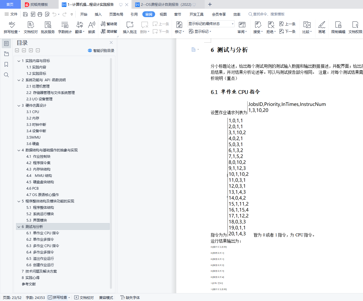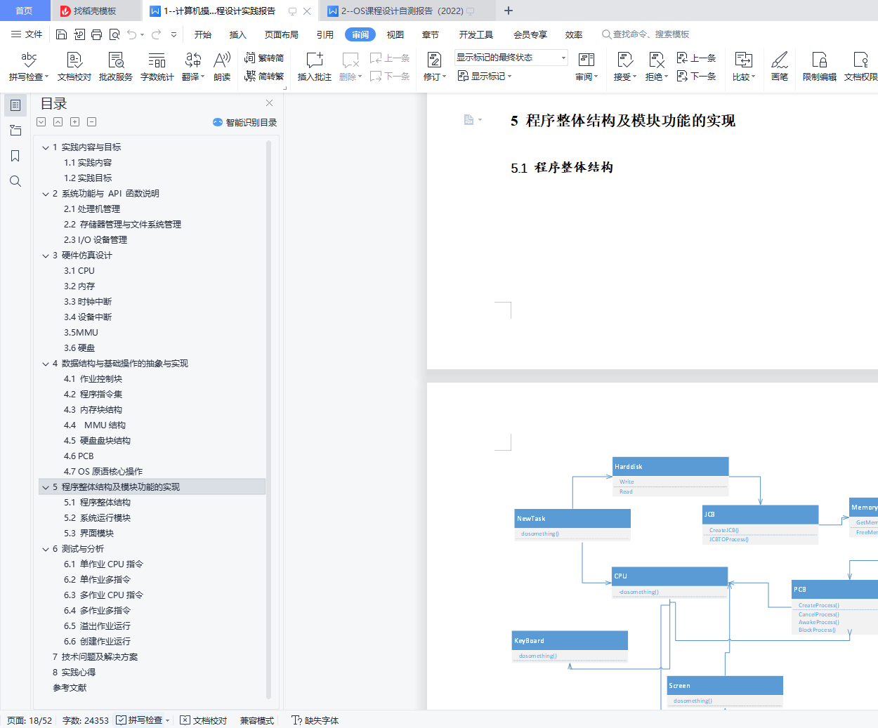 摘要:以计算机操作系统原理为指导,利用面向对象程序设计技术仿真 OS 内核的作业管理、 连续内存管理、页式虚存管理、进程同步与互斥、缓冲技术、磁盘管理和文件管理的 API 功 能,可视化显示操作系统工作过程,完成操作系统课程设计的程序设计、开发、测试,答辩 以及撰写实践报告。本时间选择了难度3,基础实现了基础设计硬件部分的仿真、作业管理、并发请求文件设计、用户程序段指令文件的设计、作业运行及操作系统运行详细记录的文件的保存、进程控制块PCB设计。实现了作业并发环境下,MMU 地址变换、作业调度算法、进程原语、优先级+时间片轮转进程调度算法,位示图法实现连续空间动态分配管理。并把连续空间分配过程可视化实现。我定义的PCB和JCB和其他在定义的时候并没有很多变量,这都是因为我考虑不周,发现在实现函数的时候才需要更多的变量来存储一些值。比如这次实验需要实现指令运行自定义时间,就需要定义一个变量,存储进程每条指令的已运行时间,然后再把这个运行时间与既定的运行时间相比较,如果满足条件才能指向下一条指令。而对于内存地址来说,一个进程在创建后才有内存空间,但是内存地址由于内存申请在前不好传递给进程,则需要在进程中重新定义一个内存起地址变量。