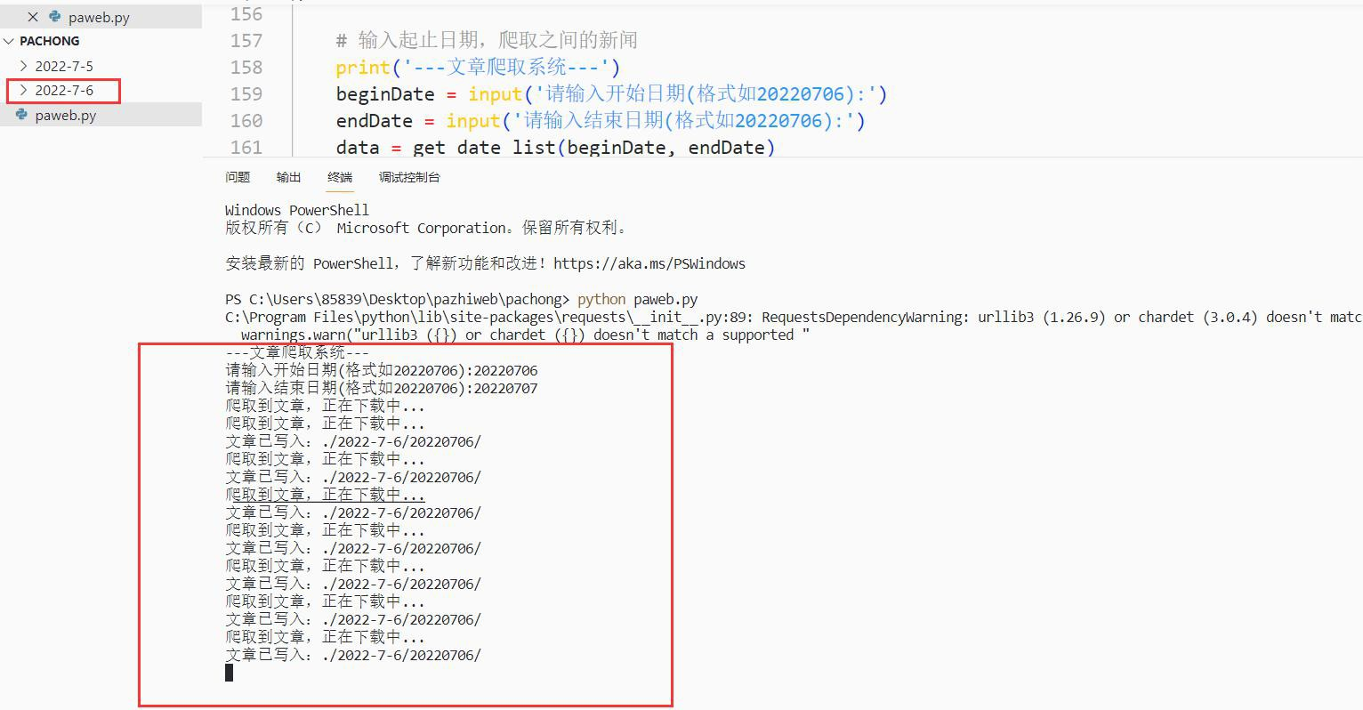 以输入要爬取的日期以及结束日期,将这些日期内的文章全部爬取下来,以日期为名自动生成一个主存储目录,爬取到的文章保存写入 txt 文件中,每个文本的存储名字以日期加序号存储。