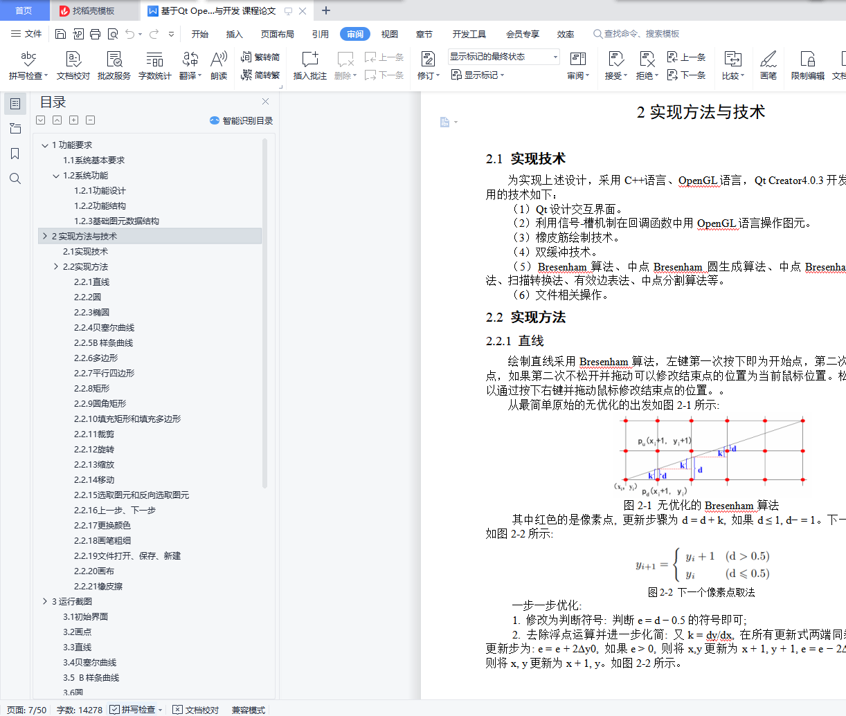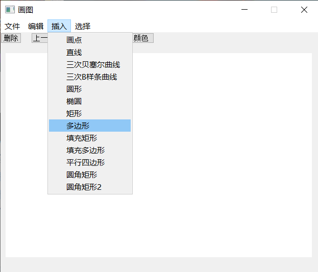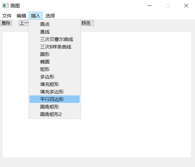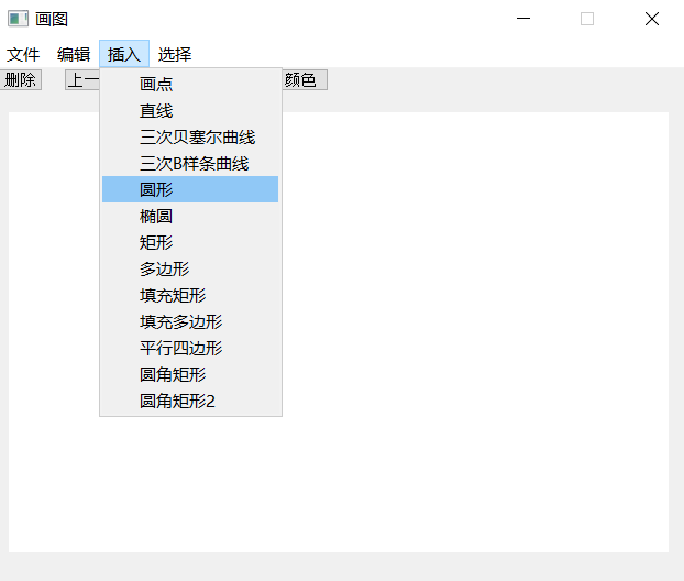 界面设计采用Qt开发工具,而绘图算法采用OpenGL实现。Qt作为目前比较流行的图形界面开发工具,对于设计者来说,各界面模块拖拽、操控方便,便于理解,其信号-槽机制也十分高效。OpenGL则是非常经典的图形编程语言,其渲染功能强大,不少游戏开发语言都是以OpenGL为内核渲染的。总体来看,需要实现的系统的主要功能为通过交互,绘制图形,并保存为.bmp 格式的文件。而无论是哪种绘图算法,本质上来说,都是在决定哪些位置的像素点应该被置为当前画笔的颜色。