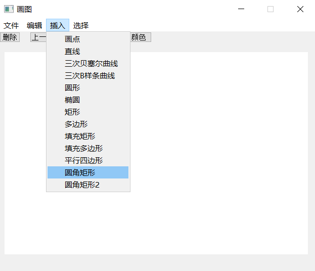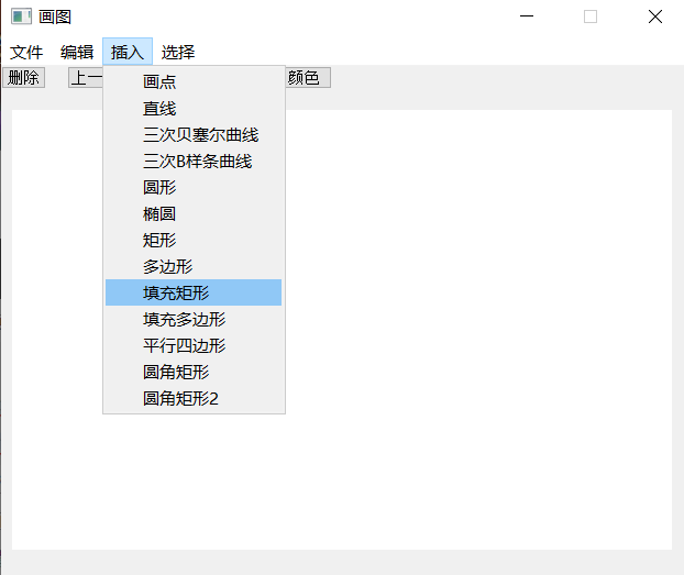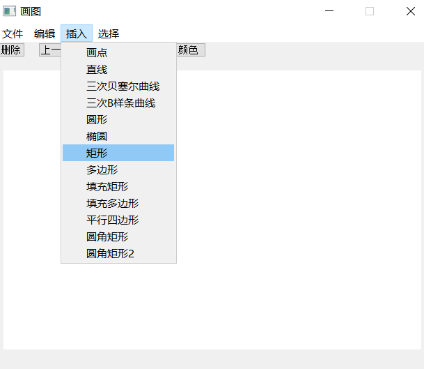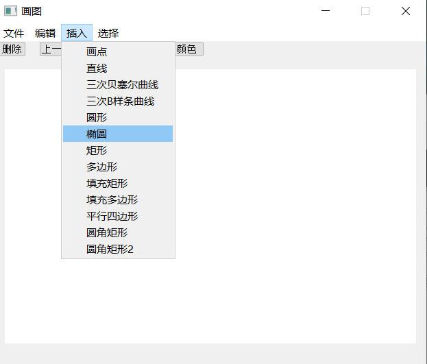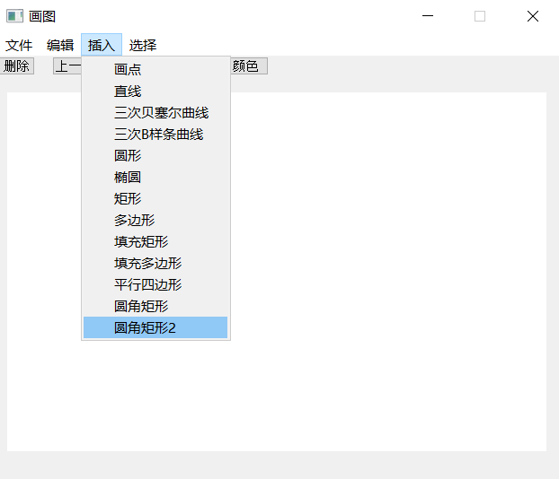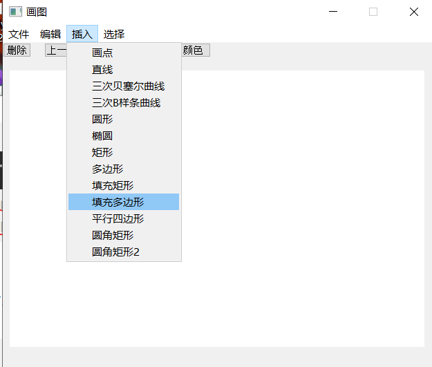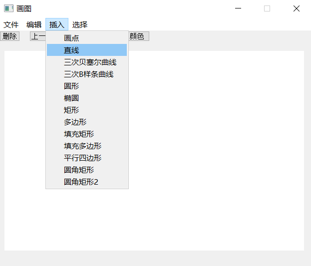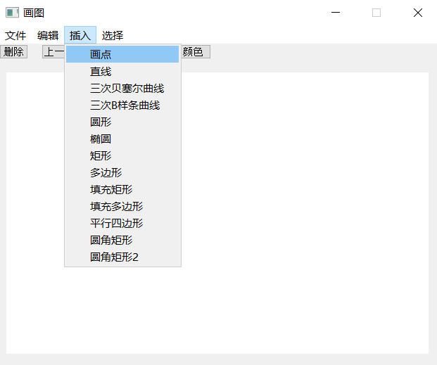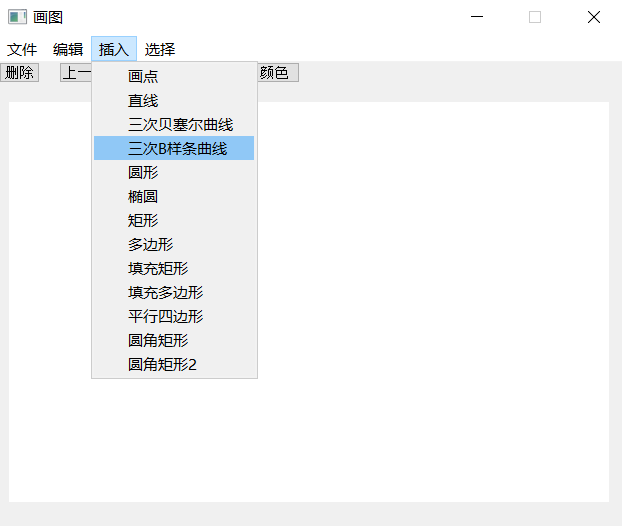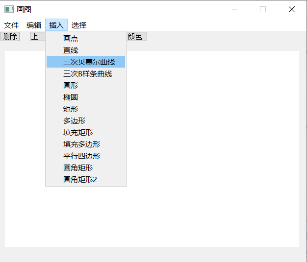 (3) 系统包含的绘图功能:基本图形的绘制(直线、圆、椭圆、矩形、平行四边形、圆角矩形等)、多边形的绘制、曲线的绘制(Bezier曲线、二次B样条曲线等)、图形的裁剪、图形属性(线宽、线型)的设置、图形的擦除、图形的保存等功能。