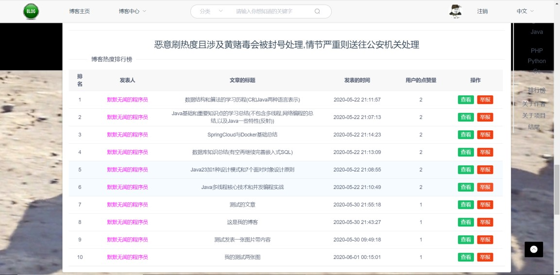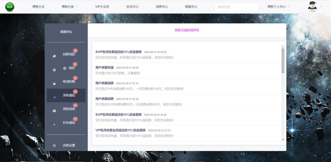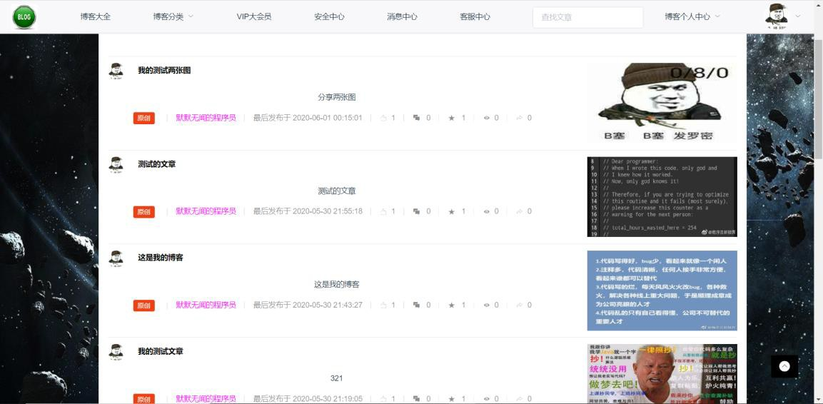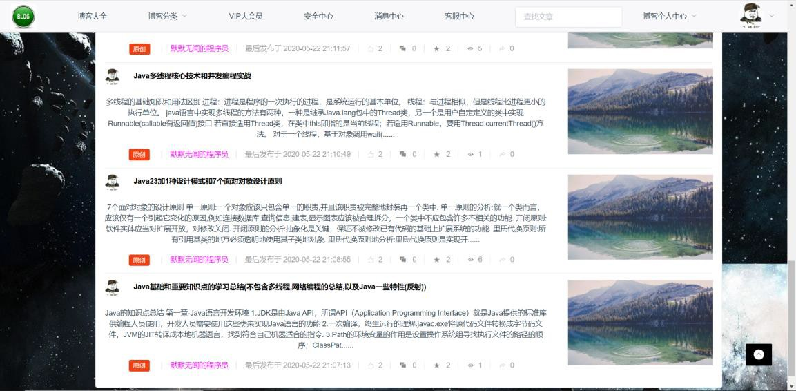 Blog is used to share their feelings and dynamically close the distance between people. It changes the way people communicate on the Internet, and also enhances the interest of the Internet. "Micro service" has become popular in the past two years, but in fact, it was proposed by experts as early as 20 years ago, but the user volume at that time was not as high as it is now. For example, the more functions a system has, the more technical debts it will incur. However, the code base developed based on single application (a war package) is becoming more and more bloated, with poor maintainability and "no damage, no repair" of the code. Therefore, the introduction of "micro service" architecture can improve this situation. Each micro service center is responsible for the business of each function in an independent process, and a series of independent micro service centers jointly build the whole system. Nowadays, the separation of front end and back end of web is a trend of enterprises, and the separation of front end and back end is also a reflection of technological innovation. Thanks to the trend of development separation, the combination of Vue and spring cloud occupies an important position in today's Web site development.