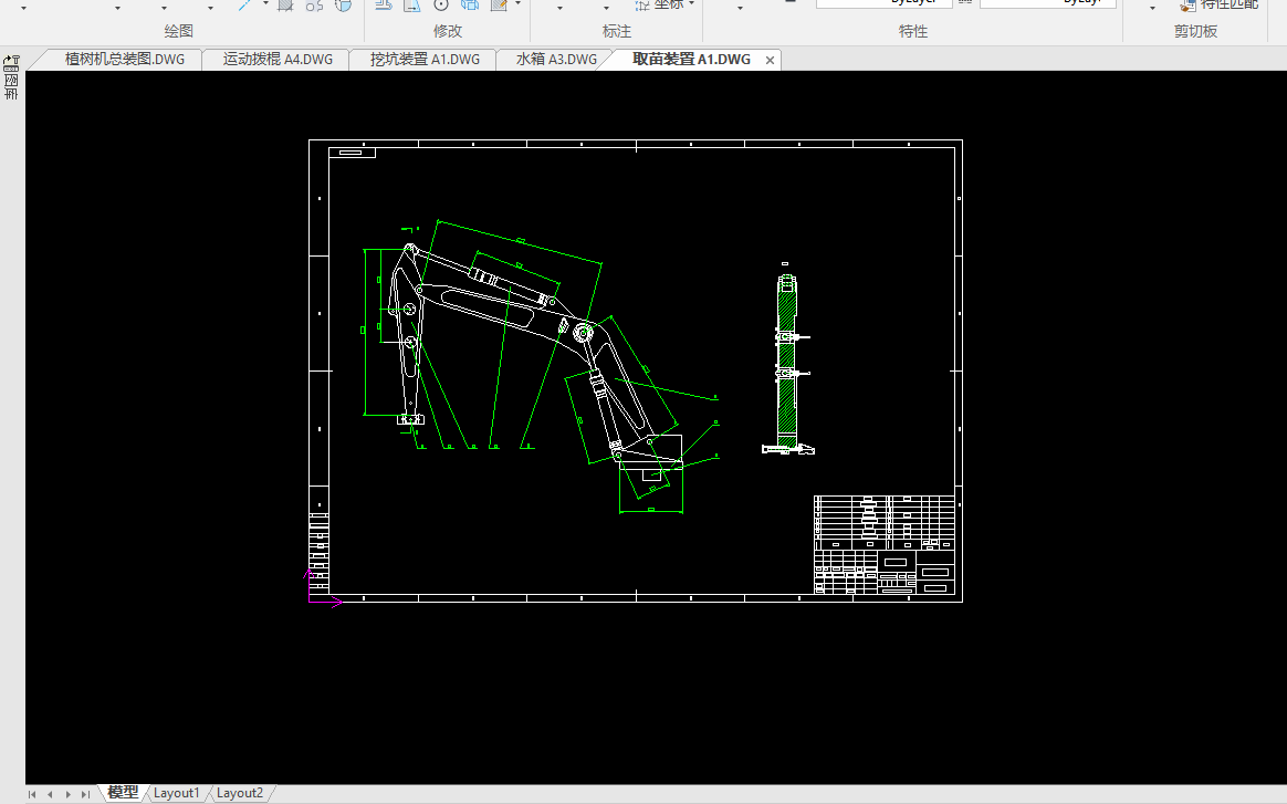 该植树机主要由液压系统、挖坑机构、覆土机构、镇土机构及投苗机构等部分组成。其中,挖坑机构负责高效准确地挖掘树坑,覆土机构则将土壤覆盖于树苗周围,投苗机构精准投放树苗,而镇土机构则通过创新的“V”字型设计,不仅压实土壤,还有效防止雨水积聚,为树苗提供更好的生长环境。