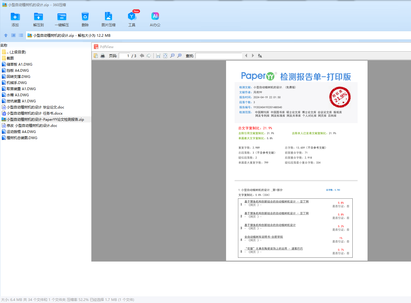 此设计的社会效益显著,不仅能提高植树造林的工作效率,减少人力成本,还能有效保证树苗的成活率,推动生态环境的改善与保护。对于我国西北平原地区的植树造林工作,该小型自动植树机具有积极的推广价值,为我国的生态文明建设贡献力量。