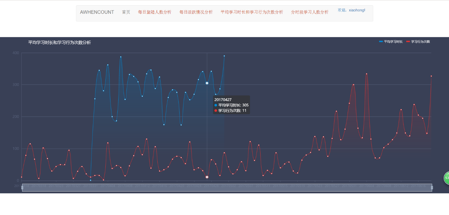 5.6 平均学习时长和学习行为次数分析界面