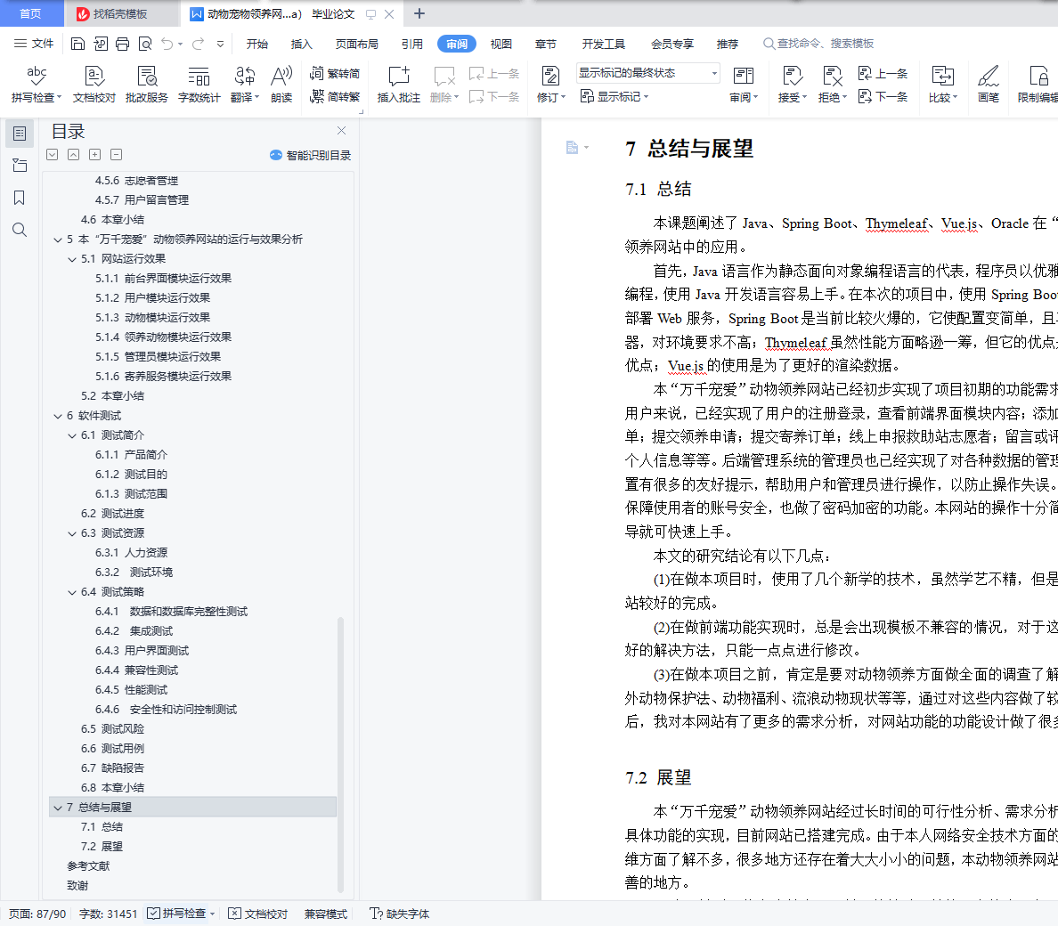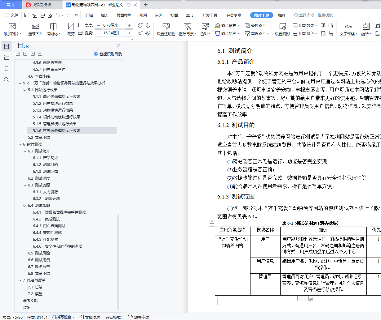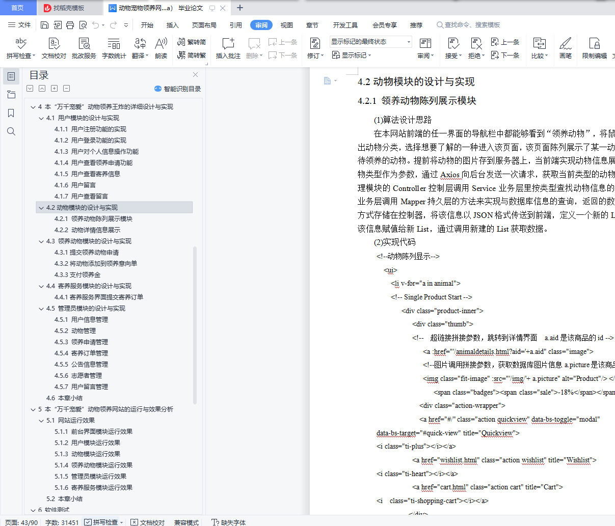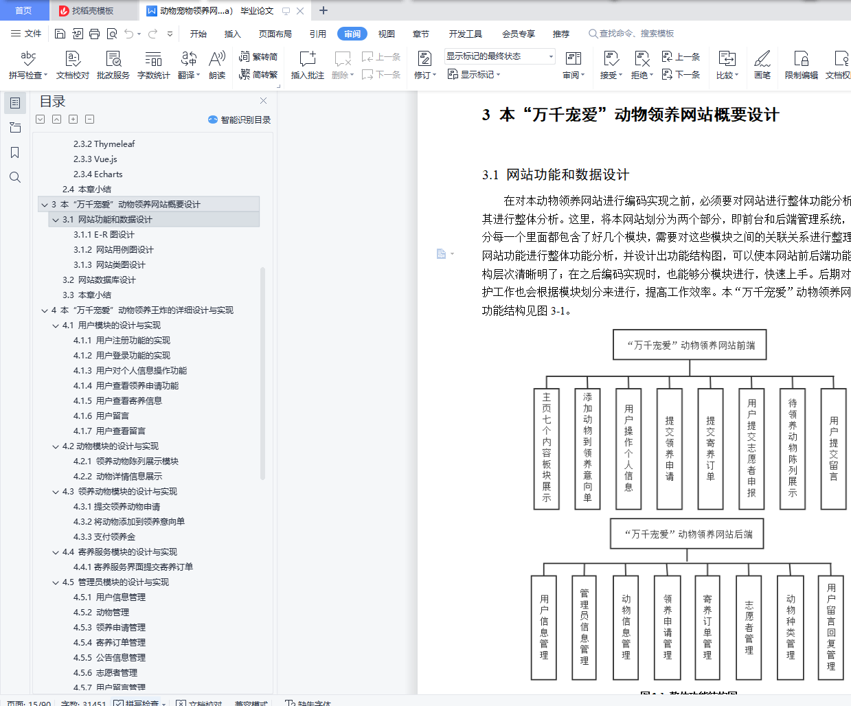 摘 要据公开数据显示,我国流浪动物总量近5000万只,数量庞大且呈现逐年增加的态势,饥饿、被虐待、疾病等悲剧围绕着它们。且流浪动物泛滥给公民自身安全、社会及生态环境等方面都带来了许多不良影响,由此,一些省市地方政府为解决流浪动物泛滥影响公民生活的问题,决定成立动物救助站,也有公民自发自愿成立救助团队。受地理区域的限制、资金不足、救助工作宣传困难等问题,流浪动物的救助、领养工作进展缓慢。随着互联网的迅猛发展,尤其是电子商务快速普及,为动物领养、助养的普及与发展提供了良好的条件。虽然已有一部分人率先搭上互联网的顺风车,建立相关动物救助、领养、助养的网站,但是因信息更新不及时、地域限制、人力物力匮乏等问题,且救助站内存在动物泛滥、资金紧缺的情况,不能形成一个良性的循环。本“万千宠爱”动物领养网站利用Web浏览器和客户端浏览器的网络高效率、低成本、及时更新的特点,致力于为真心喜爱动物的人提供便捷安全的领养平台,在减轻流浪动物带来的不良影响的同时,能够帮助它们找到新家,重获新生。该论文有图44幅,表25个,参考文献13篇。关键词:动物 领养 流浪 救助Design and implementation of thousands of pet animaladoption websiteAbstractAccording to public data, the total number of stray animals in China is nearly 50 million, which is huge and increasing year by year. Tragedies such as hunger, abuse and disease surround them. Moreover, the proliferation of stray animals has brought many adverse effects on citizens' own safety, society and ecological environment. Therefore, in order to solve the problems that the proliferation of stray animals affects citizens' life, some provincial and municipal local governments decided to establish animal rescue stations, and some citizens volunteered to establish rescue teams. Due to geographical constraints, lack of funds and difficulties in publicity of rescue work, the rescue and adoption of stray animals have made slow progress.With the rapid development of the Internet, especially the rapid popularization of e-commerce, it provides good conditions for the popularization and development of animal adoption and assistance. Although some people have taken the lead in taking the ride of the Internet to establish websites for animal rescue, adoption and support, a virtuous circle cannot be formed due to the problems of untimely information update, geographical restrictions, lack of human and material resources, and the proliferation of animals and shortage of funds in the rescue station.Using the characteristics of high efficiency, low cost and timely update of web browser and client browser, this "thousands of favorite" animal adoption website is committed to providing a convenient and safe adoption platform for people who really love animals. While reducing the adverse effects of stray animals, it can help them find a new home and regain their rebirth.There are 44 figures, 25 tables and 13 references in this paper.Key Words: Animals Adopt Stray Rescue目 录摘 要 IAbstract II目 录 III图清单 V表清单 VII1 绪论 11.1 动物领养网站的现状与发展 11.2 “万千宠爱”动物领养网站的研究内容 21.3 “万千宠爱”动物领养网站的研究目的和意义 21.4 本章小结 32 本“万千宠爱”动物领养网站的分析 42.1 可行性分析 42.2 需求分析 42.3 框架介绍 62.4 本章小结 73 本“万千宠爱”动物领养网站的概要设计 83.1 网站功能和数据设计 83.2 网站数据库设计 223.3 本章小结 264 本“万千宠爱”动物领养网站的详细设计与实现 274.1 用户模块的设计与实现 274.2 动物模块的设计与实现 364.3 领养动物模块的设计与实现 384.4 寄养服务模块的设计与实现 424.5 管理员模块的设计与实现 434.6 本章小结 525 本“万千宠爱”动物领养网站的运行与效果分析 535.1 网站运行效果 535.2 本章小结 686 软件测试 696.1 测试简介 696.2 测试进度 716.3 测试资源 716.4 测试策略 726.5 测试风险 746.6 测试用例 746.7 缺陷报告 796.8 本章小结 797 总结与展望 807.1 总结 807.2 展望 80参考文献 82致谢 83