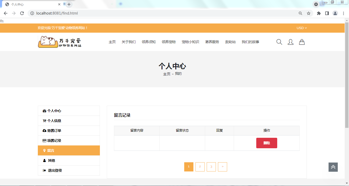 动物宠物领养网站的设计与实现(论文)