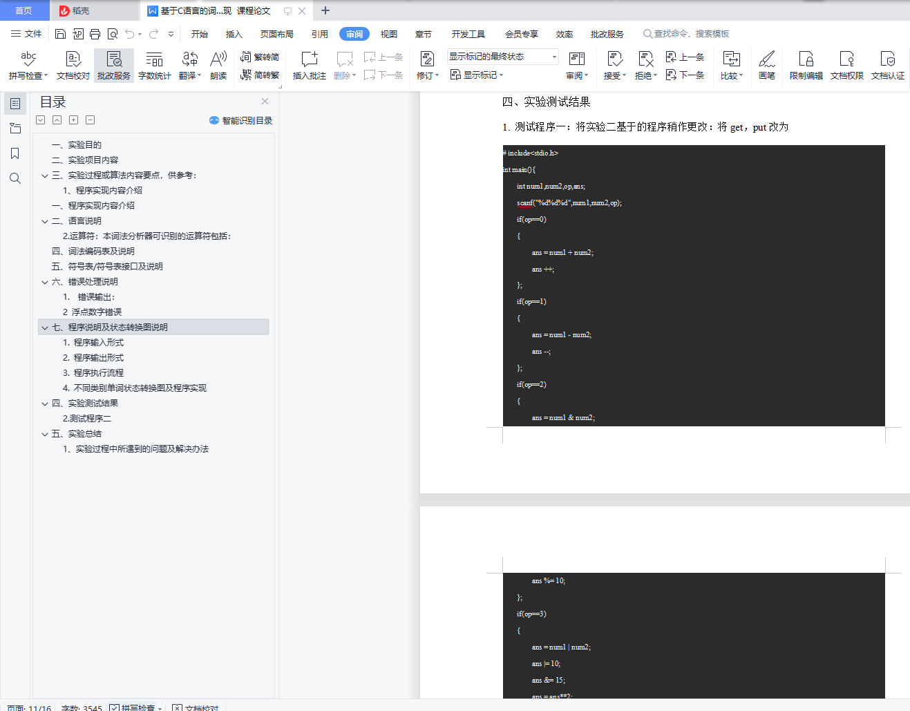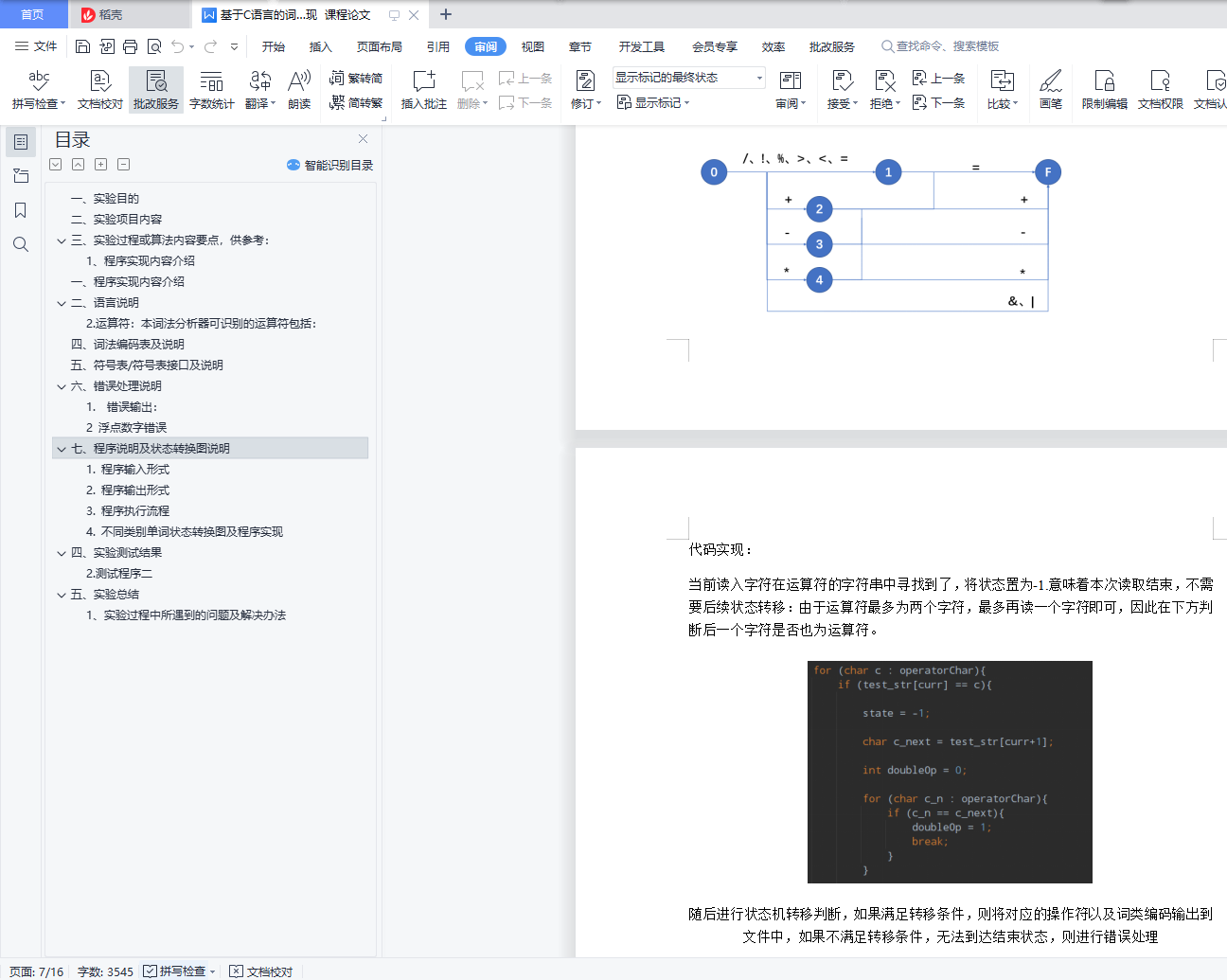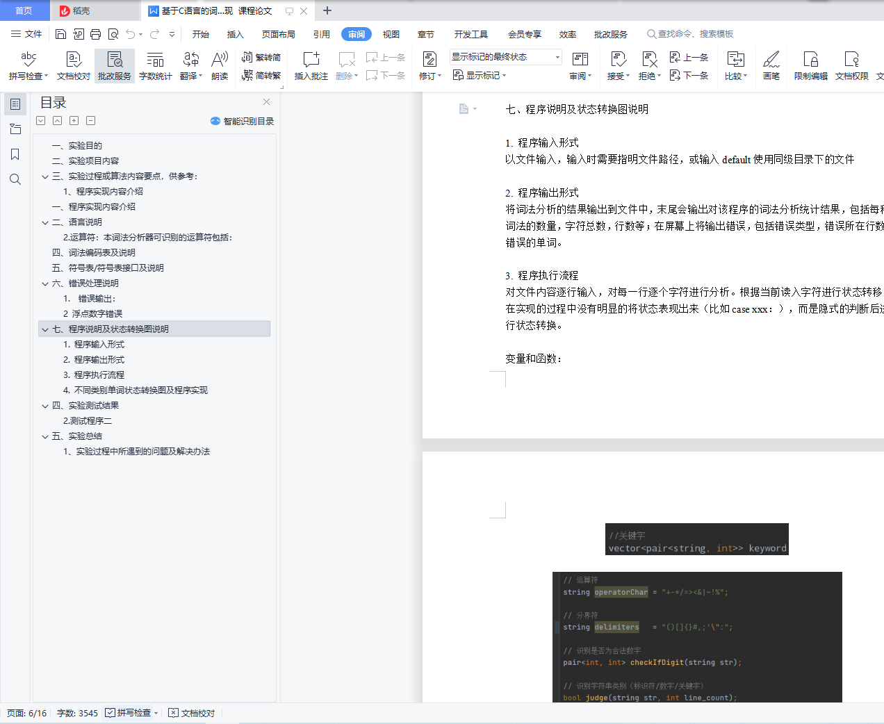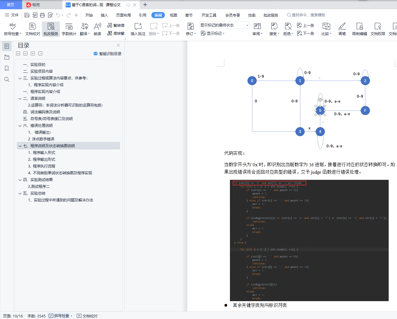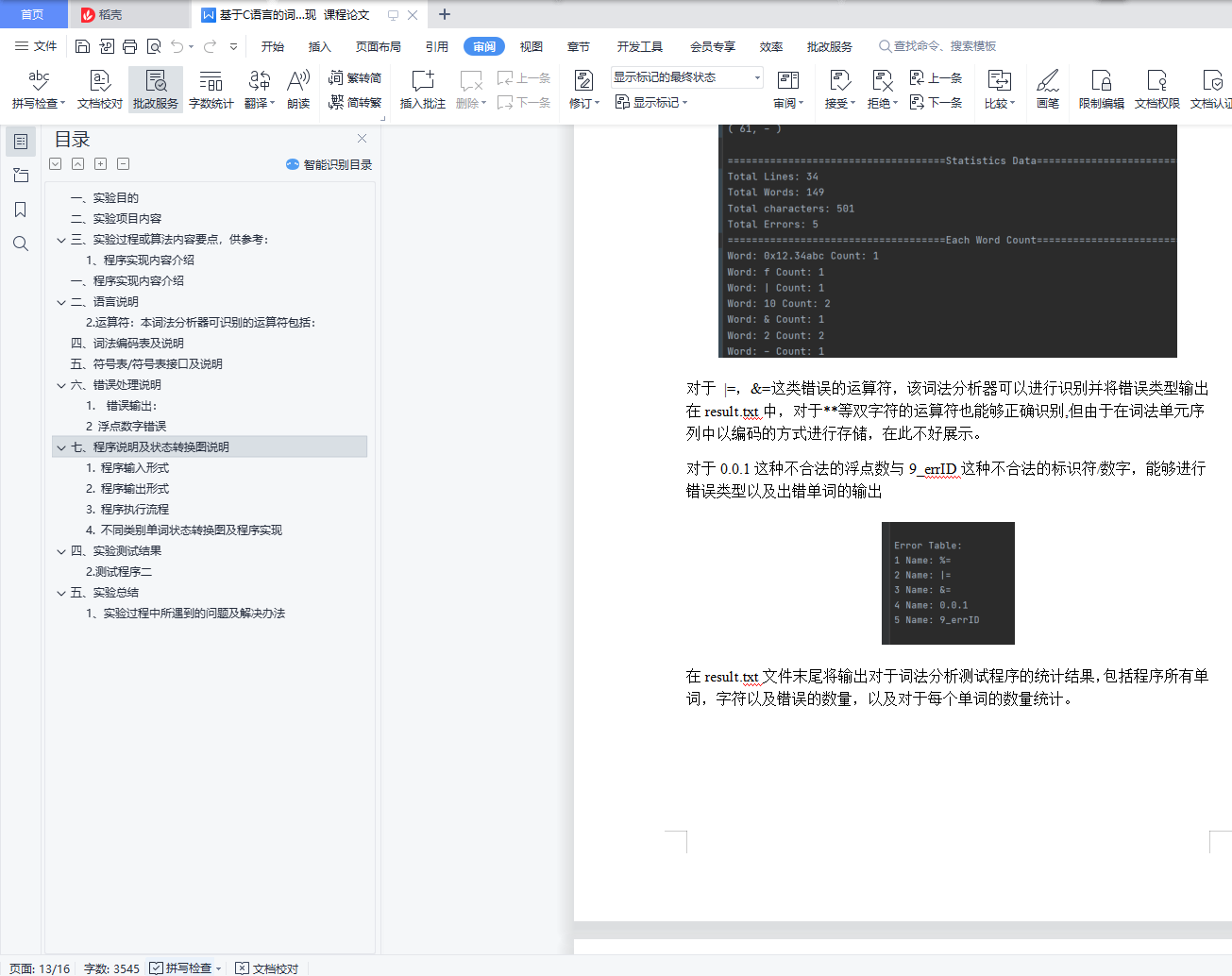 编译原理课程词法分析实验报告