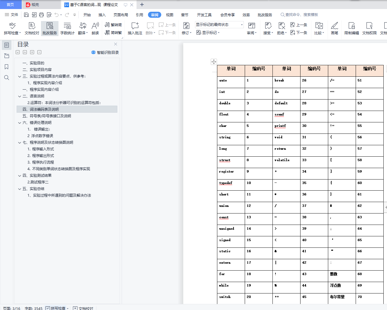 2. 提交实验报告及源代码。实验报告需严格遵循学校文档规范,内容包含对应文法、词类编码表、词法分析测试用例。