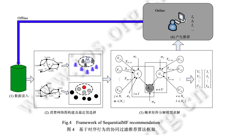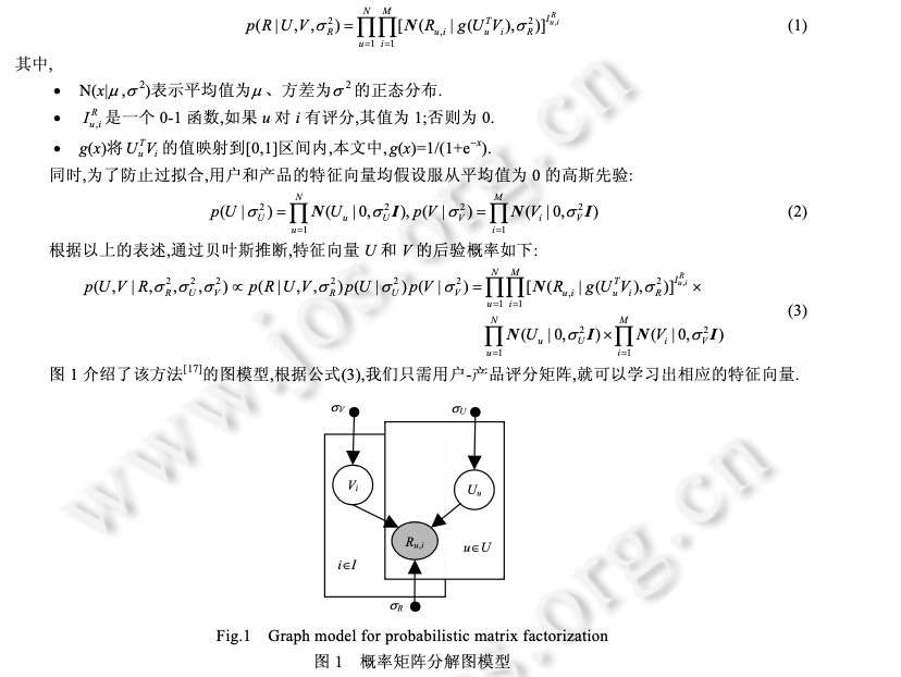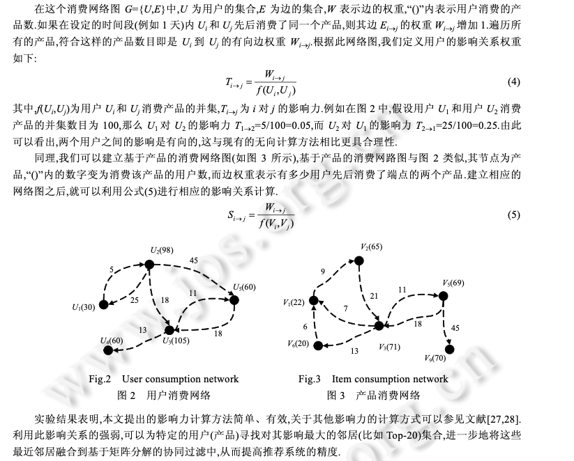 利用MovieLens数据,Pearson相似度,分别基于User和Item构建一个简单的kNN推荐系统,并给出RMSE评测1目录1相关工作 11.1 传统的协同过滤算法 11.2 基于时序信息的推荐算法 21.3 基于关系挖掘的协同过滤算法 22 问题定义和概率矩阵分解 33 SequentialMF 推荐算法描述 43.1 基于时序行为建模的最近邻选择 43.2 矩阵分解模型 53.3 SequentialMF时间复杂度分析 83.4 算法讨论 84 推荐框架 95 实验结果及分析 95.1 实验数据集 95.2 评价标准 105.3 比较算法及参数设定 105.4 实验结果与分析 126总结 151相关工作1.1 传统的协同过滤算法协同过滤(collaborative filtering,简称CF)利用与目标用户相似的用户行为(评分、点击次数等)推断目标用户对特定产品的喜好程度,然后根据这种喜好程度进行相应推荐 .目前,协同过滤推荐算法主要包括基于近邻 和基于模型两类.基于近邻的协同过滤算法首先是根据用户的历史信息计算用户(产品)之间的相似性,然后利用与目标用户 (产品)相似性较高的邻居对其他产品的评价来预测用户对特定产品的喜好程度,系统根据这一喜好程度对目标 用户进行推荐.目前,基于近邻的协同过滤算法主要包括基于用户的和基于产品的两类.基于用户的协同 过滤算法的核心在于找相似的用户,基于产品的算法主要是找相似的产品.与基于近邻的算法不同,基于模型的协同过滤算法主要通过用户对产品的评分信息训练出相应的模型,利用此模型预测未知的数据 .目前,基于模型的算法主要包括聚类模型 、概率相关模型 、潜在因子模型 、 贝叶斯层次模型等.最近,由于处理大数据的需要,Salakhutdinov 等人提出了利用低维近似矩阵分解模型进 行推荐的概率矩阵分解算法(probabilistic matrix factorization,简称 PMF),它一般假设每个用户的兴趣只受到少数几个因素的影响,然后将用户(产品)映射到低维的特征空间中,通过用户(产品)的评分信息来学习用户(产品) 的特征向量,从而重构评分矩阵,利用重构的低维矩阵预测用户对产品的评分,进行相应的推荐.由于用户和产 品的特征向量维数比较低,因而可以通过梯度下降的方法高效地求解.文献[17]中的实验结果表明,基于矩阵分 解的算法可以有效地处理大数据并能取得比较理想的精度.为了减少 PMF 当中参数设定对算法的影响, Salakhutdinov 等人进一步提出了贝叶斯概率矩阵分解算法(Bayesian probabilistic matrix factorization,简称 BPMF).BPMF 采用马尔可夫链蒙特卡洛算法进行参数估计,其推荐效果与 PMF 相比有了一定的提高.文献证明了 PMF 与概率主成分分析在理论上一致,在此基础上提出了 NPMF(non-linear PMF),NPMF 通过高斯过程 对 PMF 进行非线性扩展,进一步提高了算法效果.传统的协同过滤算法虽然能够进行相应的推荐,但其往往仅采用评分信息,而与之密切相关的时序信息和 关系信息则被忽略,有效利用这些信息可以进一步提高推荐算法的精度.许多学者以此为出发点,提出了基于时 序信息和关系信息的推荐算法.