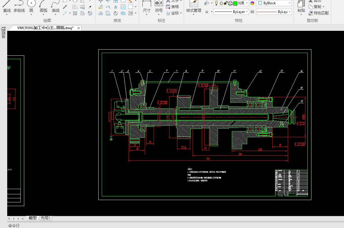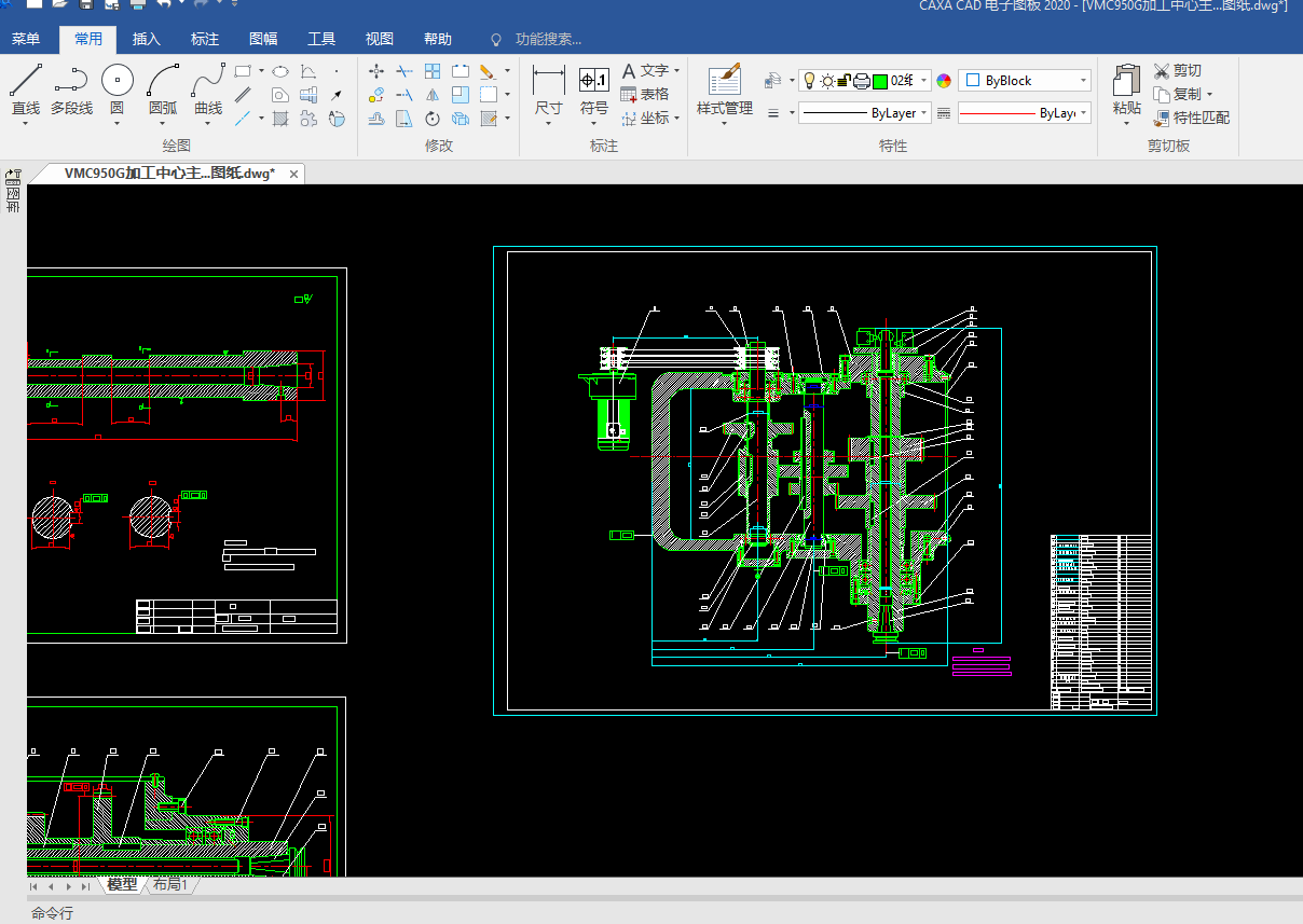 Key words: VMC950G machining center; transmission structure of spindle box; mechanical design; technical parameters; system design and assembly drawing