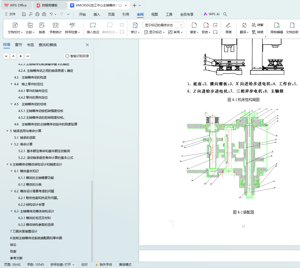 关键词:VMC950G加工中心;主轴箱传动结构;机械设计;技术参数;系统设计;装配图