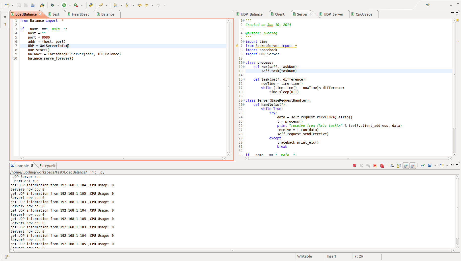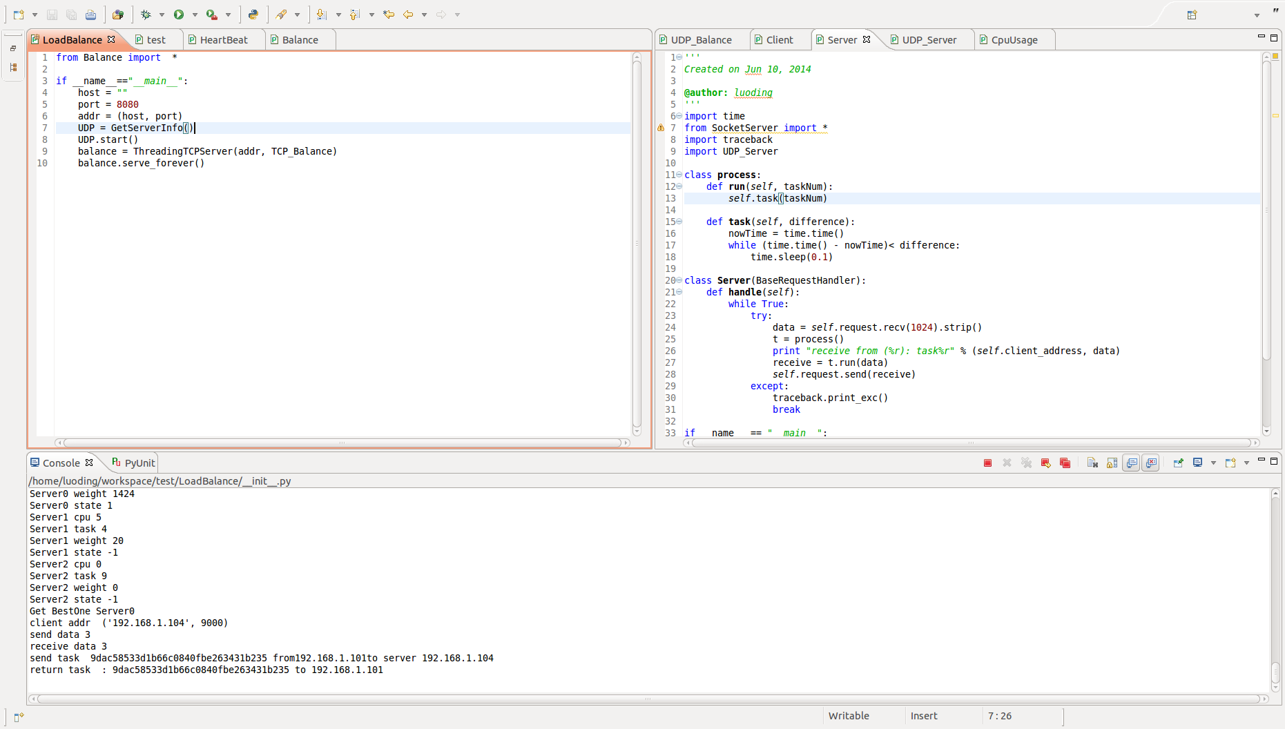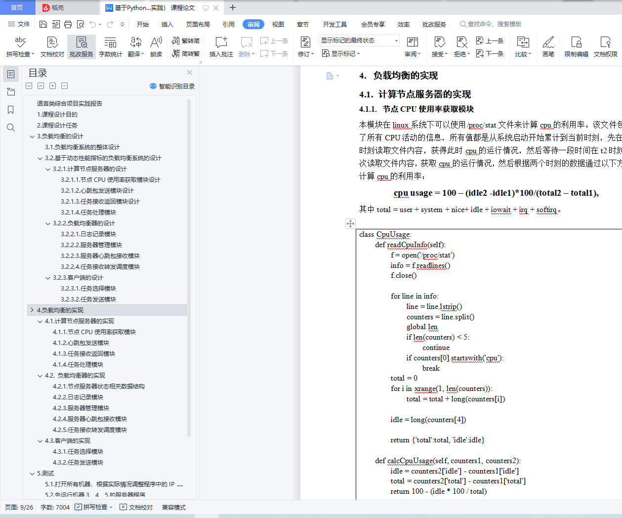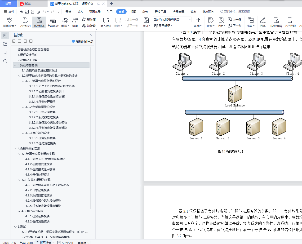目录目录 1语言类综合项目实践报告 21. 课程设计目的 22. 课程设计任务 23. 负载均衡的设计 33.1. 负载均衡系统的整体设计 33.2. 基于动态性能指标的负载均衡系统的设计 53.2.1. 计算节点服务器的设计 53.2.2. 负载均衡器的设计 73.2.3. 客户端的设计 84. 负载均衡的实现 94.1. 计算节点服务器的实现 94.1.1. 节点CPU使用率获取模块 94.1.2. 心跳包发送模块 104.1.3. 任务接收返回模块 104.1.4. 任务处理模块 114.2. 负载均衡器的实现 114.2.1. 节点服务器状态相关数据结构 114.2.2. 日志记录模块 124.2.3. 服务器管理模块 124.2.4. 服务器心跳包接收模块 144.2.5. 任务接收转发调度模块 164.3. 客户端的实现 174.3.1. 任务选择模块 174.3.2. 任务发送模块 185. 测试 195.1. 打开所有机器,根据实际情况调整程序中的IP地址 195.2. 先运行机器3、4、5的服务器程序 205.3. 运行机器2的负载均衡程序 215.4. 调整机器1中程序需要同时运行线程数后打开客户端程序 215.5. 运行1分钟查看结果 22下图5.6为机器2运行负载均衡程序情况截图 225.6. 查看日志 226. 总结 25语言类综合项目实践报告1.课程设计目的本文主要是针对使用反向代理作为负载均衡设备的情景进行研究。将反向代理放置在客户端和服务器集群之间,用户的请求都将由反向代理统一进行处理,而不直接与服务器交互,即采用反向代理透明处理负载的策略。本文的研究意义在于,其一为建立服务器集群减少成本的开支,在负载均衡的产品中,硬件产品的均衡效果是比较理想的,但是它的价格不菲,比较适合大型业务,对于一般的企业来说是不堪重负;其二是目前的软件产品中多数需要和后端服务器有比较大的耦合度,存在特定的交互协议,来获取服务器的负载情况,其三是对后端服务器保持的持久状态考虑不是很充分,处理过于简单。本文通过对反向代理和改进后的负载均衡调度算法以期在这三个问题上得到有效的解决方法。