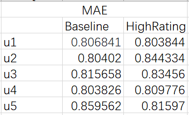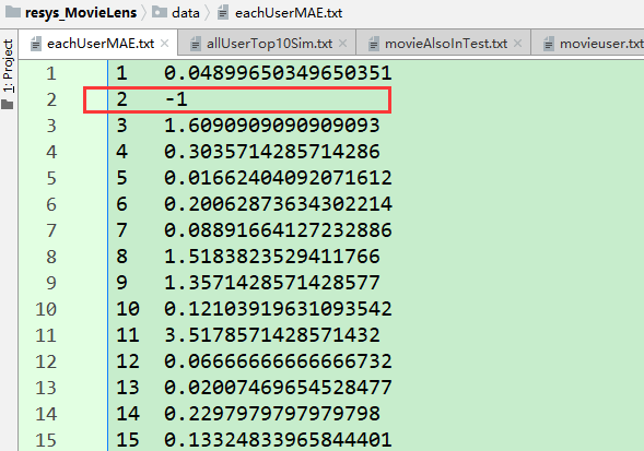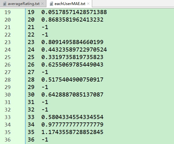 ・ eachUserMAE :保存对每个用户而言计算出的 MAE 存储结构:{user1:MAE,user2:MAE,...}