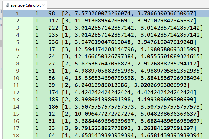 ・ averageRating :保存每个用户对被推荐的电影的预测平均分 存储结构:{user1:{movie01:[count,sumPreRating,averageRating],...},...}