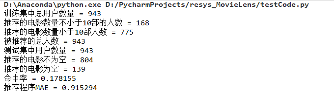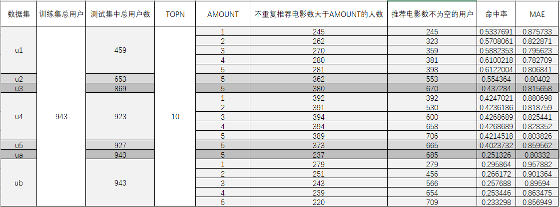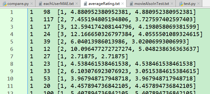 ・ movieAlsoInTest :保存推荐的电影正好也在用户测试数据中看过的那一些电影,以便后面进行 MAE 计算 存储结构:{user1:[movie1,movie2,...],...}
