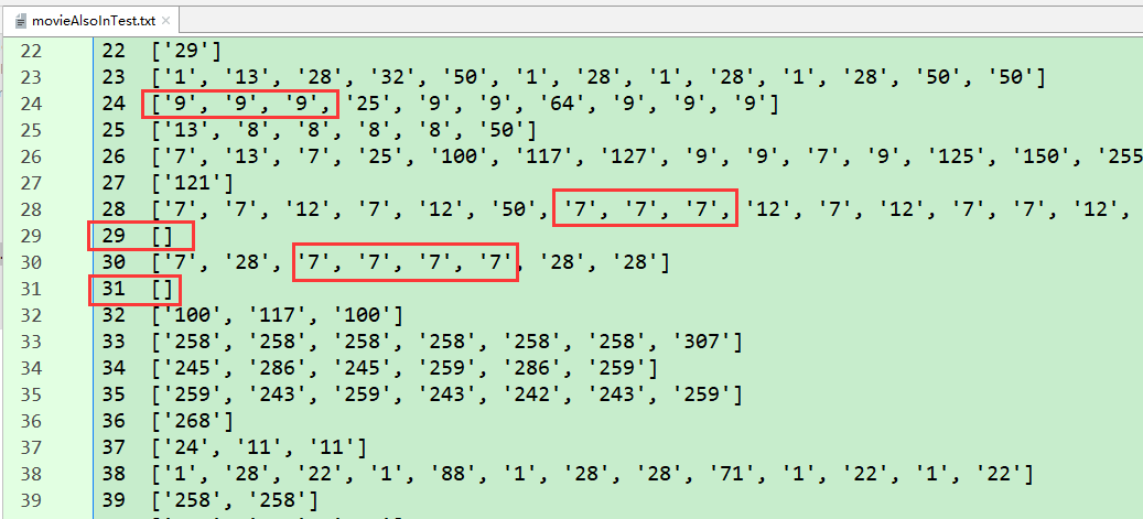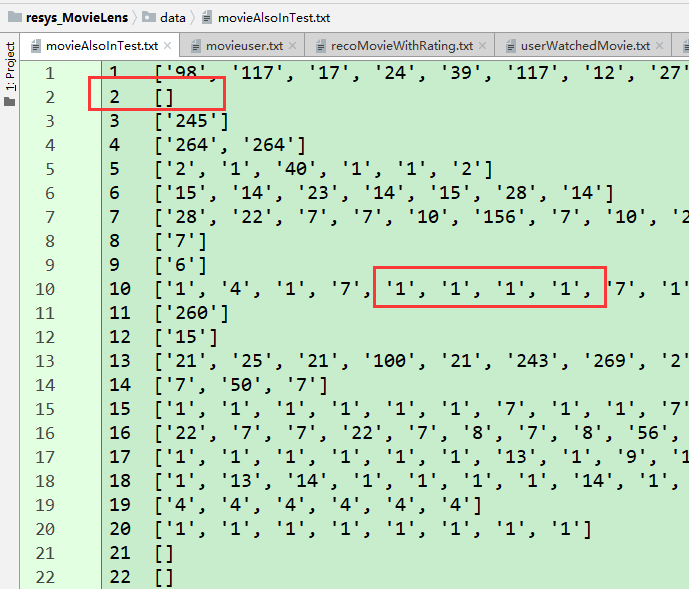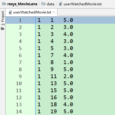 ・ userWatchedMovieTest :测试集文件中所有用户看过的所有电影 存储结构:同 userWatchedMovie