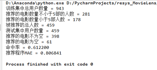 本次课程作业在 small-movielens 数据集的基础上,对用户、电影、评分数据进行了处理,然后根据 Pearson 相关系数计算出用户与其他用户之间的相似度,根据相似度进行推荐和预测评分,最后再根据数据集中的测试数据,计算该推荐系统的MAE等。