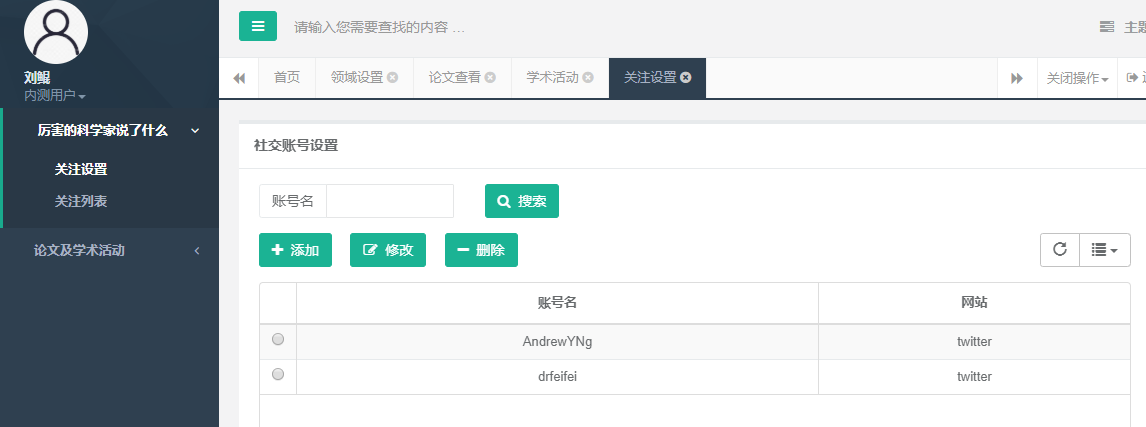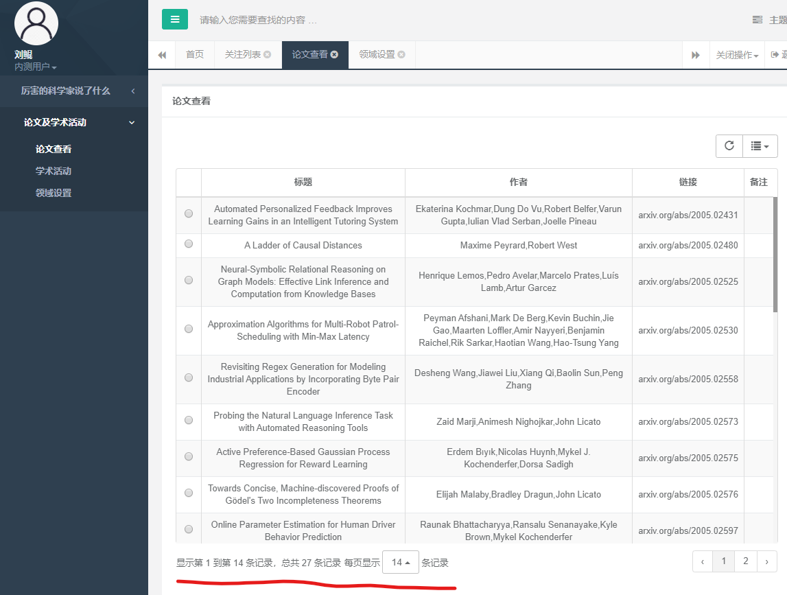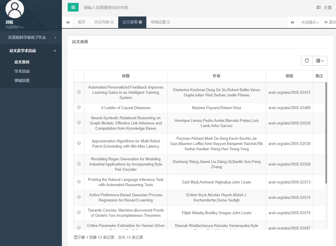 目录科研资讯推送系统 1技术选型 1部署 2爬虫 2功能 2查看论文 2设置领域 3查看学术活动 6关注实体查看 8关注实体设置 10管理员功能 10使用 11开发 111. 引言 112. 需求分析 13时间特性要求 25application/x-www-form-urlencoded 26multipart/form-data 26application/json 273. 系统分析 29Static 32Js 324. UML 设计 37外存设备及外存空间的组织 58访问数据的方式方法 58查 71多对多映射实现 71增 72删 72改 736. 系统测试 767. 课设中遇到的问题及解决 918. 课程设计总结 949. 参考文献 95部署 96科研资讯推送系统在后台管理框架 guns-lite 上进行开发技术选型核心框架:SpringBoot 数据库层:springdatajpa 安全框架:Shiro 数据库连接池:Druid 缓存:Ehcache部署阿里云学生机:ecs.n4.small Tomcat:9.0 JDK:1.8 数据库:MySQL8.0 操作系统:CentOS7爬虫Seedailyarxiv.ipynb