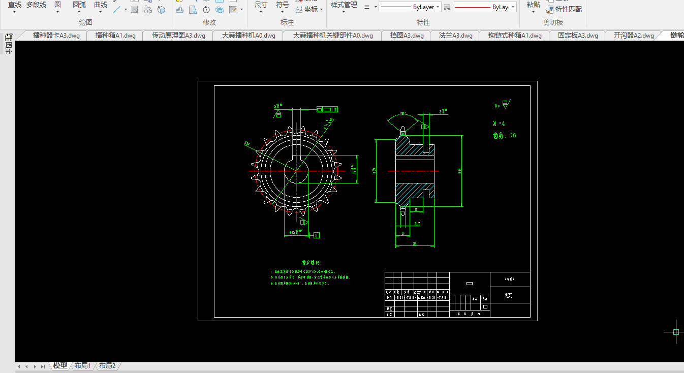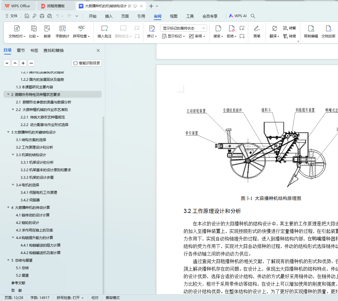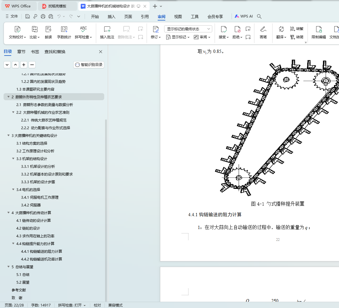 Key words: garlic planter; mechanical structure design; hook chain conveying mechanism; transmission parts; chain transmission deceleration system
