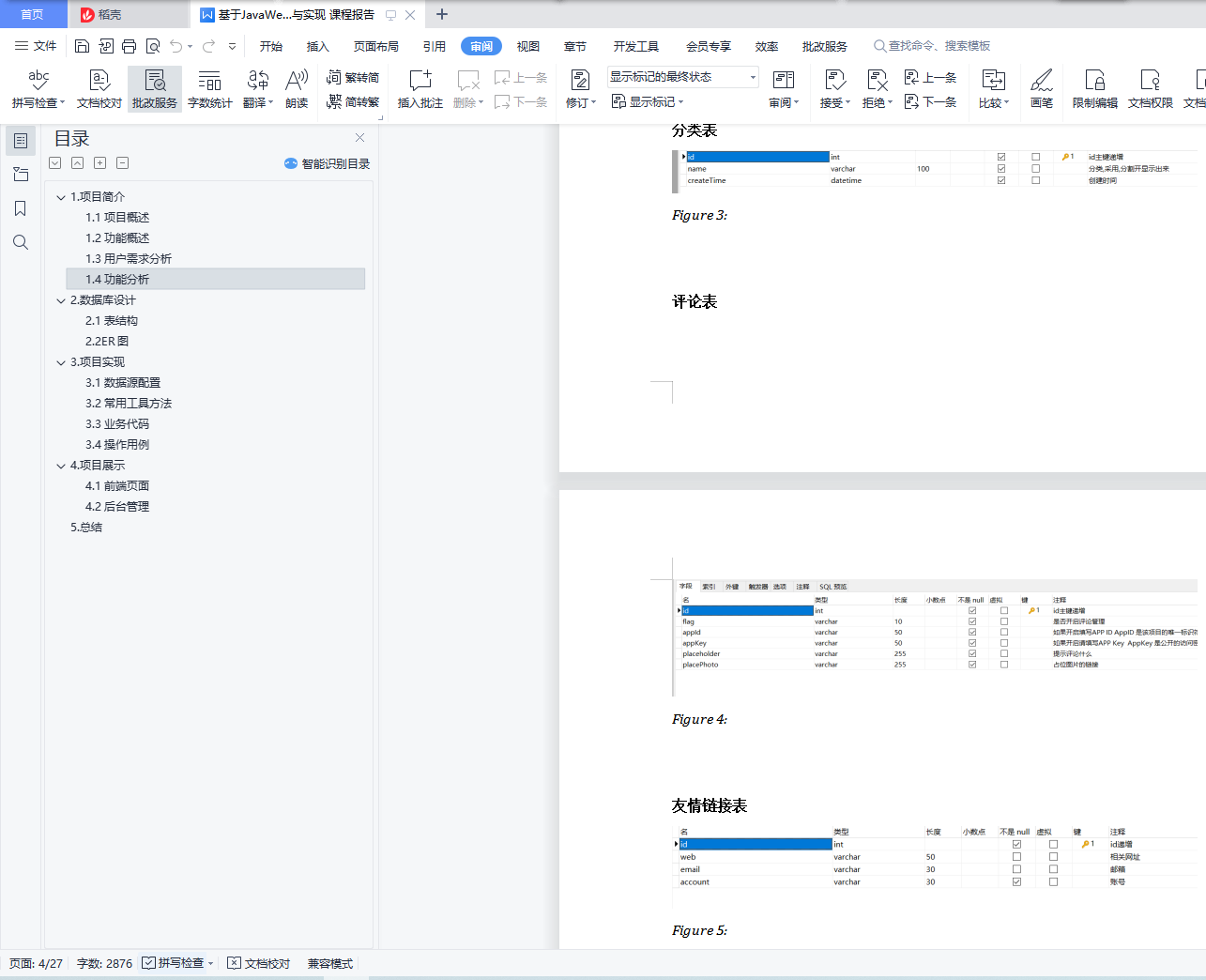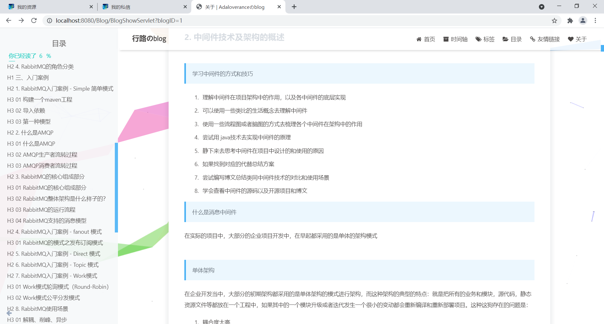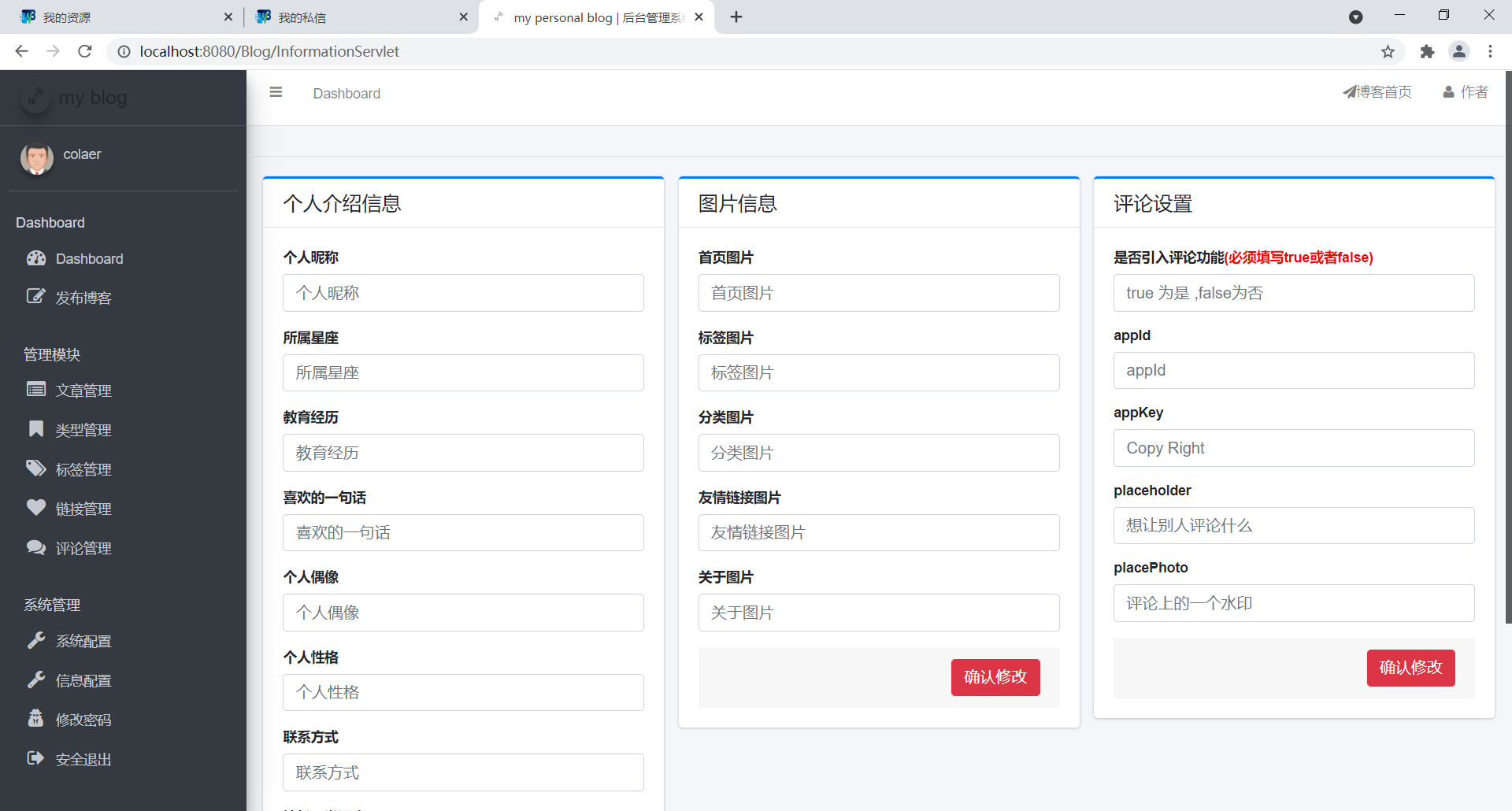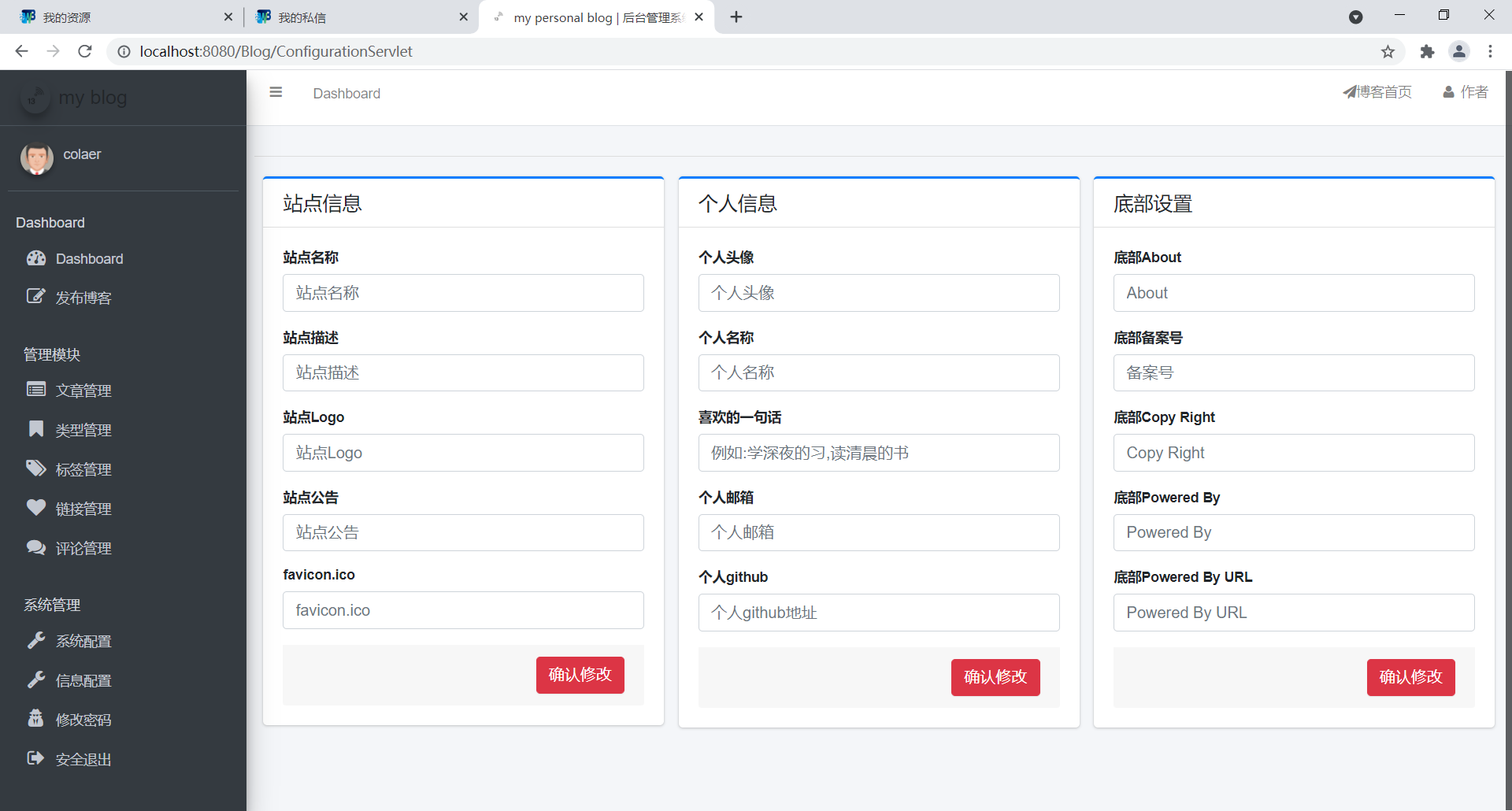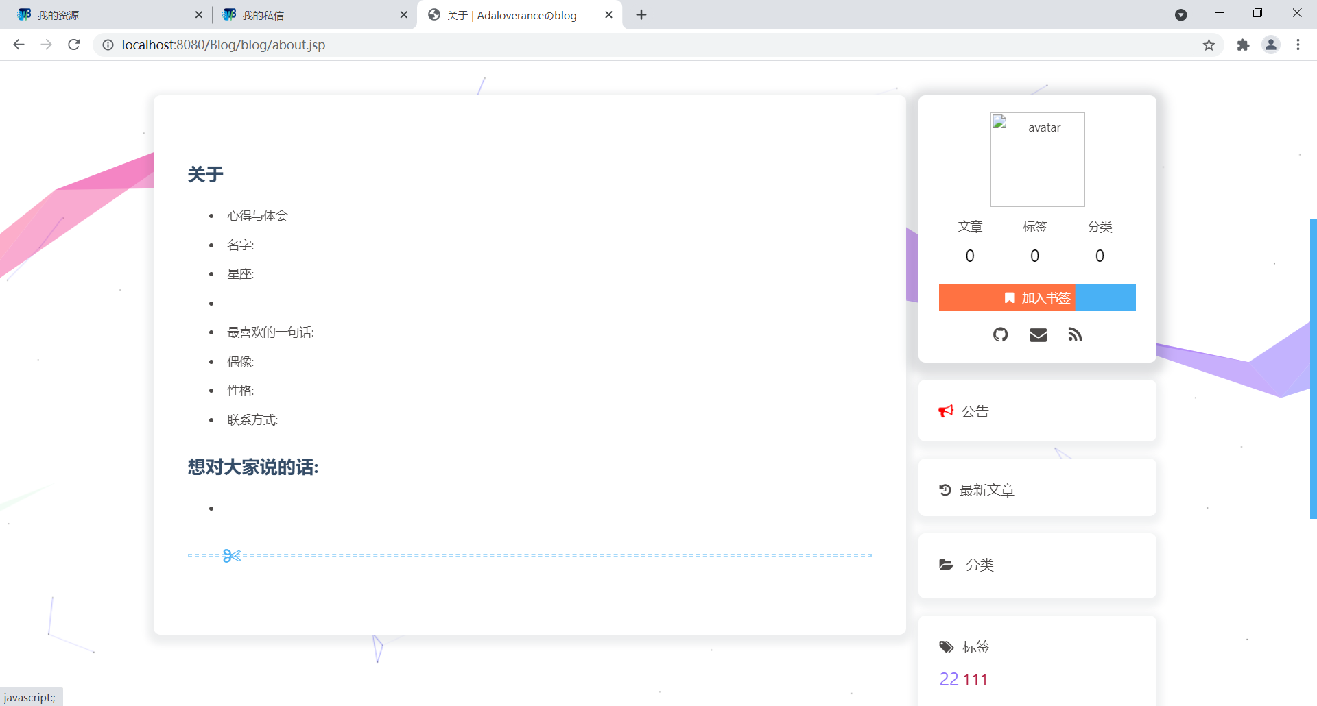 基于java实现的个人博客系统目录1.项目简介 11.1项目概述 11.2功能概述 21.3用户需求分析 21.4功能分析 32.数据库设计 42.1表结构 42.2ER图 83.项目实现 83.1数据源配置 83.2常用工具方法 93.3业务代码 143.4操作用例 154.项目展示 164.1前端页面 164.2后台管理 205.总结 261.项目简介1.1项目概述这是一个简单的个人博客系统,个人练手。完成会部署到云服务器作为记录自己生活学习的点点滴滴的一个工具。1.2功能概述最重要的功能自然是作者写文章,读者读文章。文章要有后台管理系统来管理,curd功能要有。然后用户可能会有评论,评论curd也要有。要有用户的管理模块(登录,注册,管理员对用户的管理模块)该项目是我之前学习的一个项目,一个较为完整的博客系统,具备了常见的博客相关功能,初衷就是为了解决日常的学习记录与总结。该博客系统大概包含了以下功能:用户的登录与注册、系统的权限管理、发表编辑博客、博客查阅、博客删除、博客评论、博客点赞、个人信息页展示、个人信息的修改、首页信息显示如热门标签、热门用户、热门博客、新发表博客以及所有博客列表,同时会做阅读量、评论量以及点赞量的统计,还支持全文搜索,可以快速查找出想要的内容。当然还为管理员提供了后台管理系统,用来管理与维护博客系统,如用户管理,博客管理等。