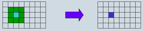 在图像上,对待处理的像素给定一个模板,该模板包括了其周围的邻近像素。将模板中的全体像素的均值来替代原来的像素值的方法。