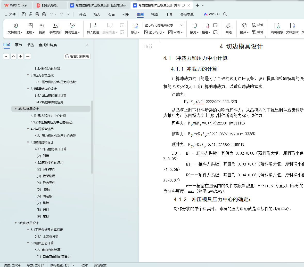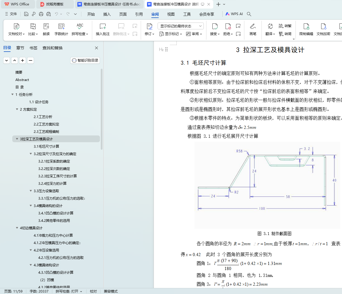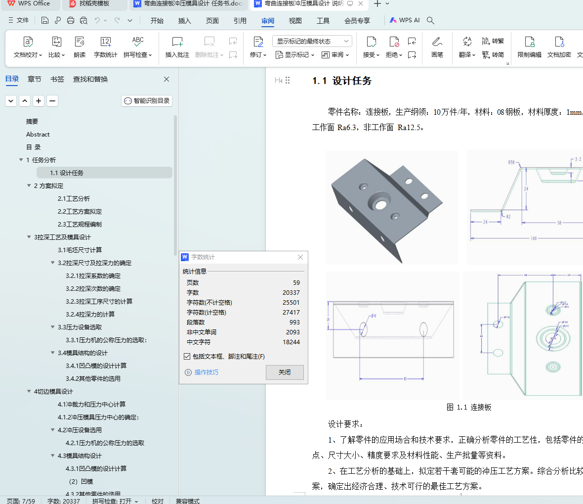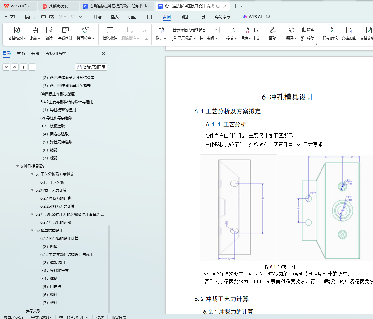 第二步根据冲压模具设计的原理对模具的零部件进行计算和校核,保证设计出来的模具结构图能够符合实际生产工作,在这些工作中撰写出设计说明书。然后使用软件画出模具设计的工程图和零部件图纸。