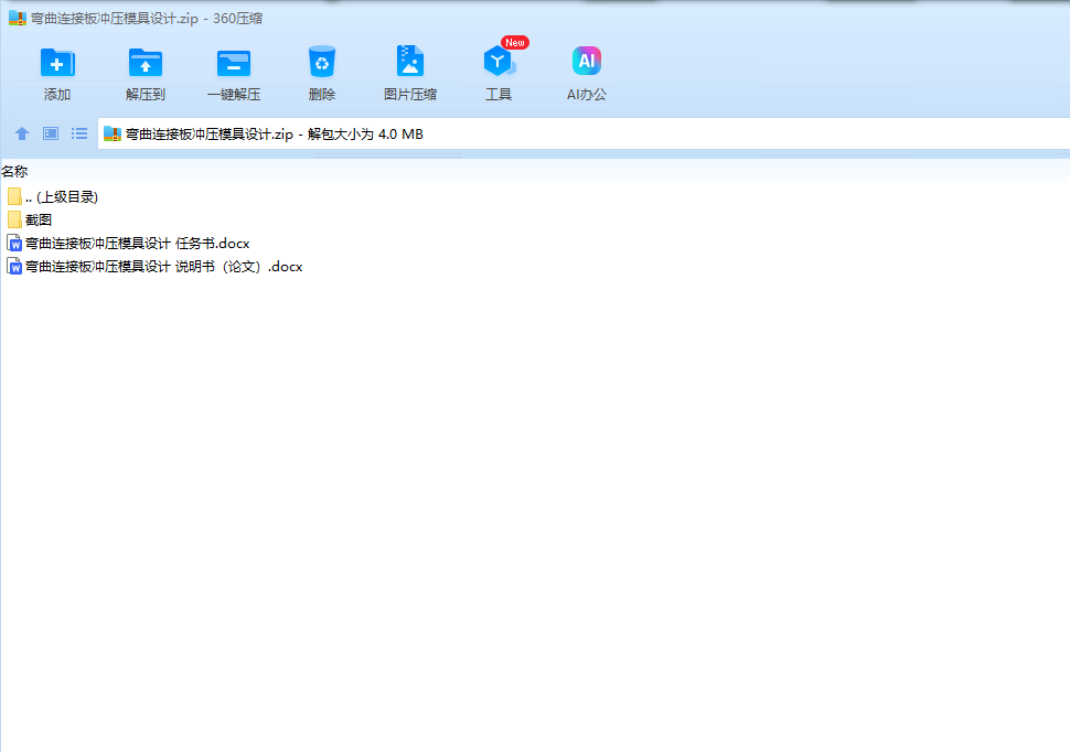 这课题是对模具三维设计,根据所学的软件使用 UG、proe 等画图软件进行三维画图,根据零件图的结构实行工艺分析。第一步对连接件结构工艺特点进行研究,分析零件图;根据产品的生产情况初步选择冲压生产设备;接下来对零件的生产进行各个方案的研究对比,从确定的计划中对凸模、凹模以及工作零部件的相关计算、校核。在这过程中确定模架,模板厚度、垫板厚度、固定板厚度、上模板、下模板等相关尺寸要求。