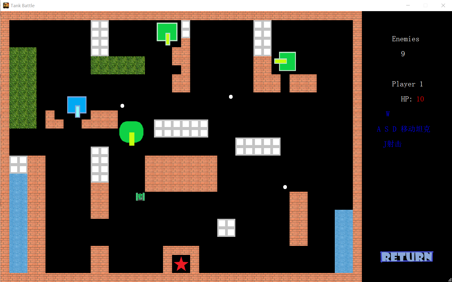 砖墙:除四周围墙外均可被一级子弹打穿海水:坦克和子弹均不可穿越