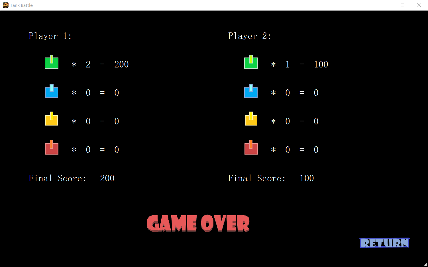 轻型坦克:移动速度普通,一级子弹,子弹射速普通,生命值为1 装甲车:移动速度快,一级子弹,子弹射速普通,生命值为2