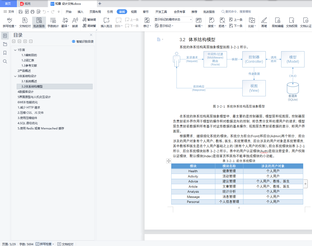 本文档详细完成对“知康”――个人健康Web应用的体系结构设计和模块的详细设计,达到指导后续软件构造的目的,同时实现和测试人员及用户的沟通。