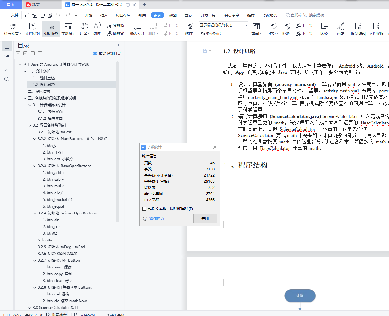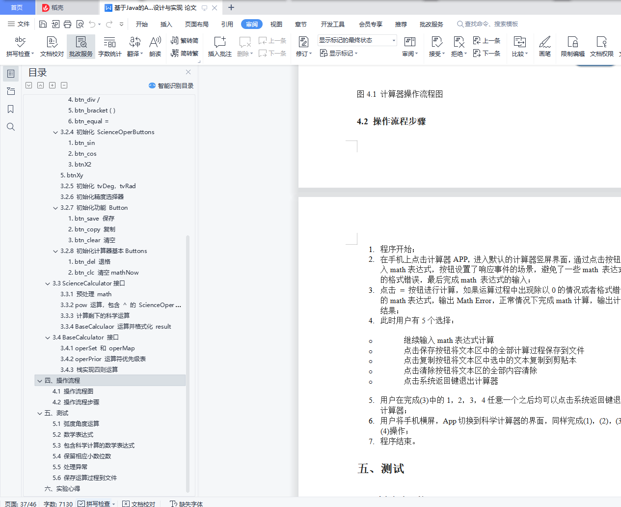 基于Java的Android计算器设计与实现目录一、设计分析 11.1 题目重述 11.2 设计思路 1二、程序结构 2三、各模块的功能及程序说明 43.1 计算器界面设计 43.2 界面各模块功能 83.3 ScienceCalculator接口 273.4 BaseCalculator 接口 32四、操作流程 374.1 操作流程图 374.2 操作流程步骤 37五、测试 385.1 弧度角度运算 385.2 数学表达式 405.3 包含科学计算的数学表达式 405.4 保留相应小数位数 415.5 处理异常 425.6 保存运算过程到文件 43六、实验心得 45