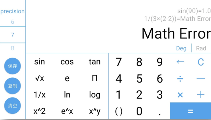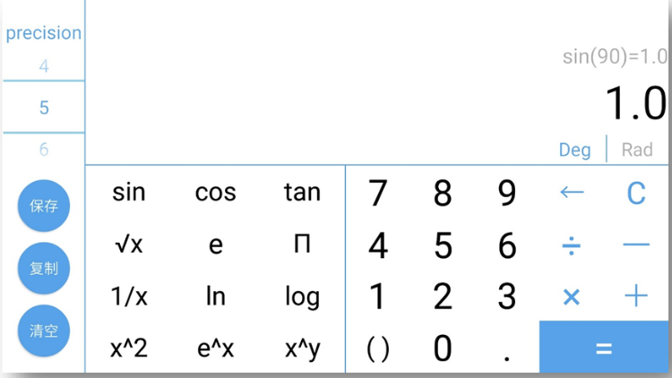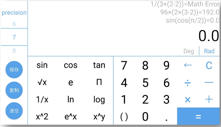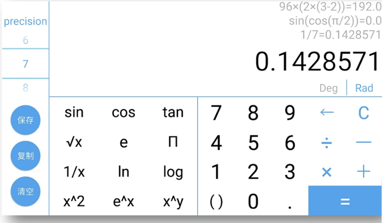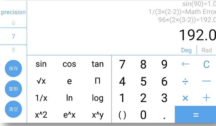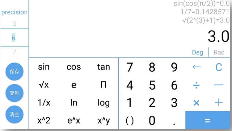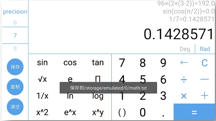 一、设计分析1.1 题目重述本次实验为了实现一个保存计算过程的计算器,主要有以下三个要求:1.仿照真实的计算器实现其功能。2.在左上方的文本框中显示当前的计算过程,在右边的文本区中显示以往的计算过程。3.单击“保存”按钮可以将文本区中的全部计算过程保存到文件;单击“复制”按钮可以将文本区中选中的文本复制到剪贴本;单击“清除”按钮可以清除文本区的全部内容。1.2 设计思路考虑到计算器的美观和易用性,我决定把计算器做在 Android 端,Android 系统的 App 的底层功能由 Java 实现,所以工作主要分为两部分:1.设计计算器界面 (activity_main.xml) 计算器界面用xml文件编写,包括手机竖屏和横屏两个布局文件: 竖屏:activity_main.xml 布局为 portrait 横屏:activity_main_land.xml 布局为 landscape 竖屏模式可以完成基本的四则运算,不涉及科学计算 横屏模式除了完成基本的四则运算,还添加了科学运算2.编写计算接口 (ScienceCalculator.java) ScienceCalculator 可以完成包含科学运算函数的 math,先实现可以完成基本四则运算的 BaseCalculator,在此基础上,实现 ScienceCalculator。 运算的思路是先通过 ScienceCalculator 完成math中需要科学计算函数的部分,再用这些部分计算的结果替换原 math 中的这些部分,使包含科学计算函数的 math 转变成可用 BaseCalculator 计算的 math。
