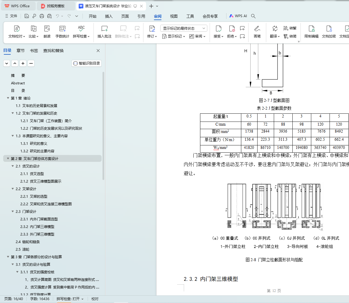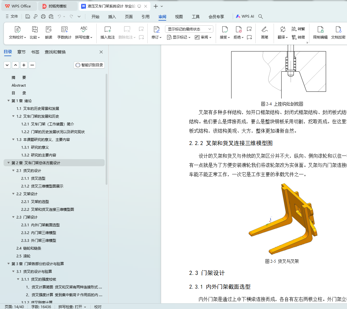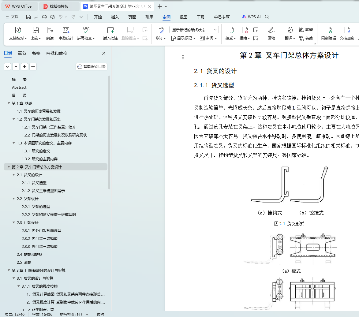 对于货叉,选用国家标准设计,并符合设计任务书;对于叉架来说,选择相对于大部分叉车来说比较美观、性价比不错的开口板式叉架;门架采用CJ型,该门架的优点便是滚轮压力并不是一直很大;最后,我们设计的液压系统简单方便。