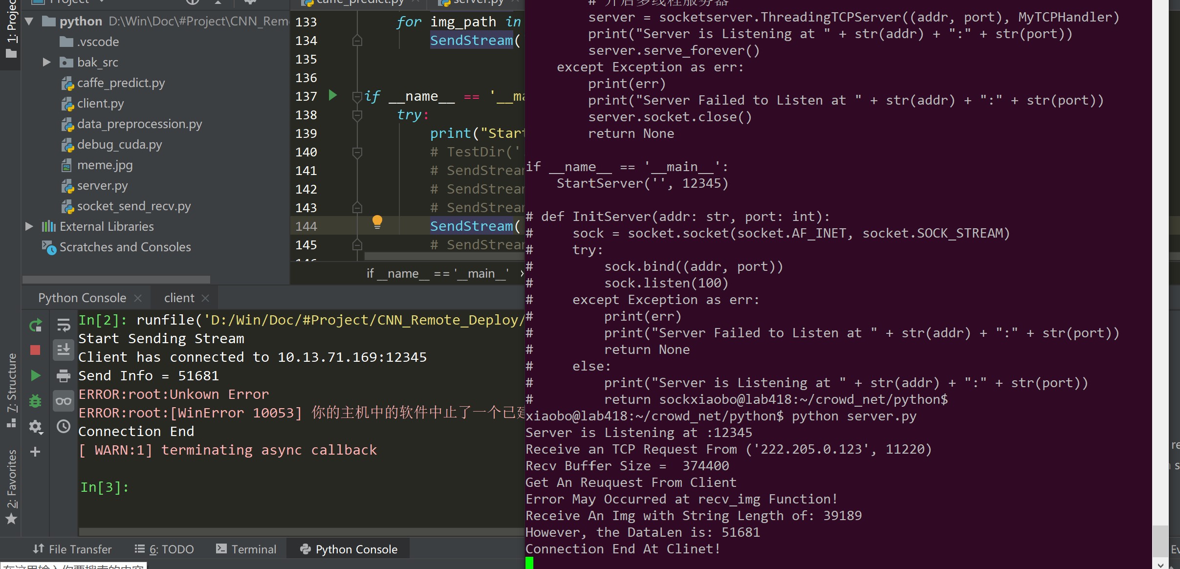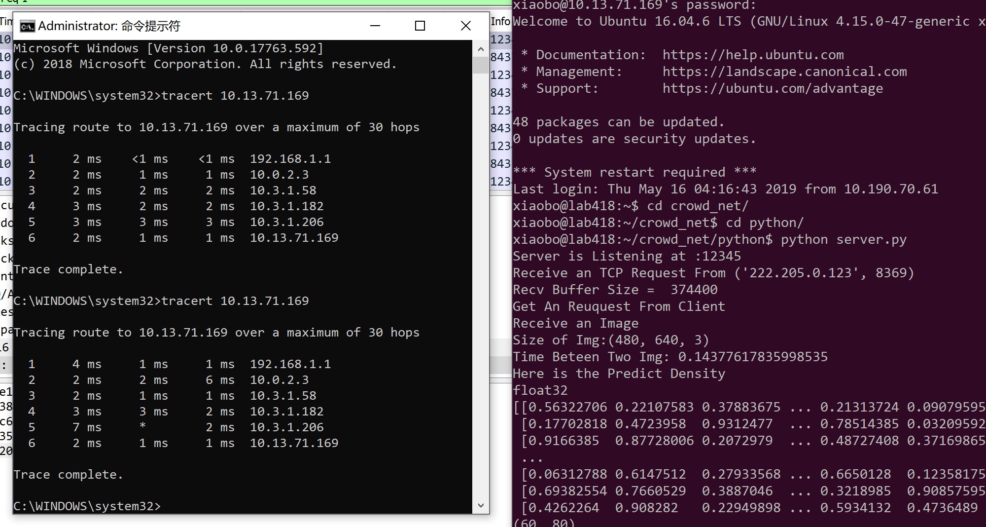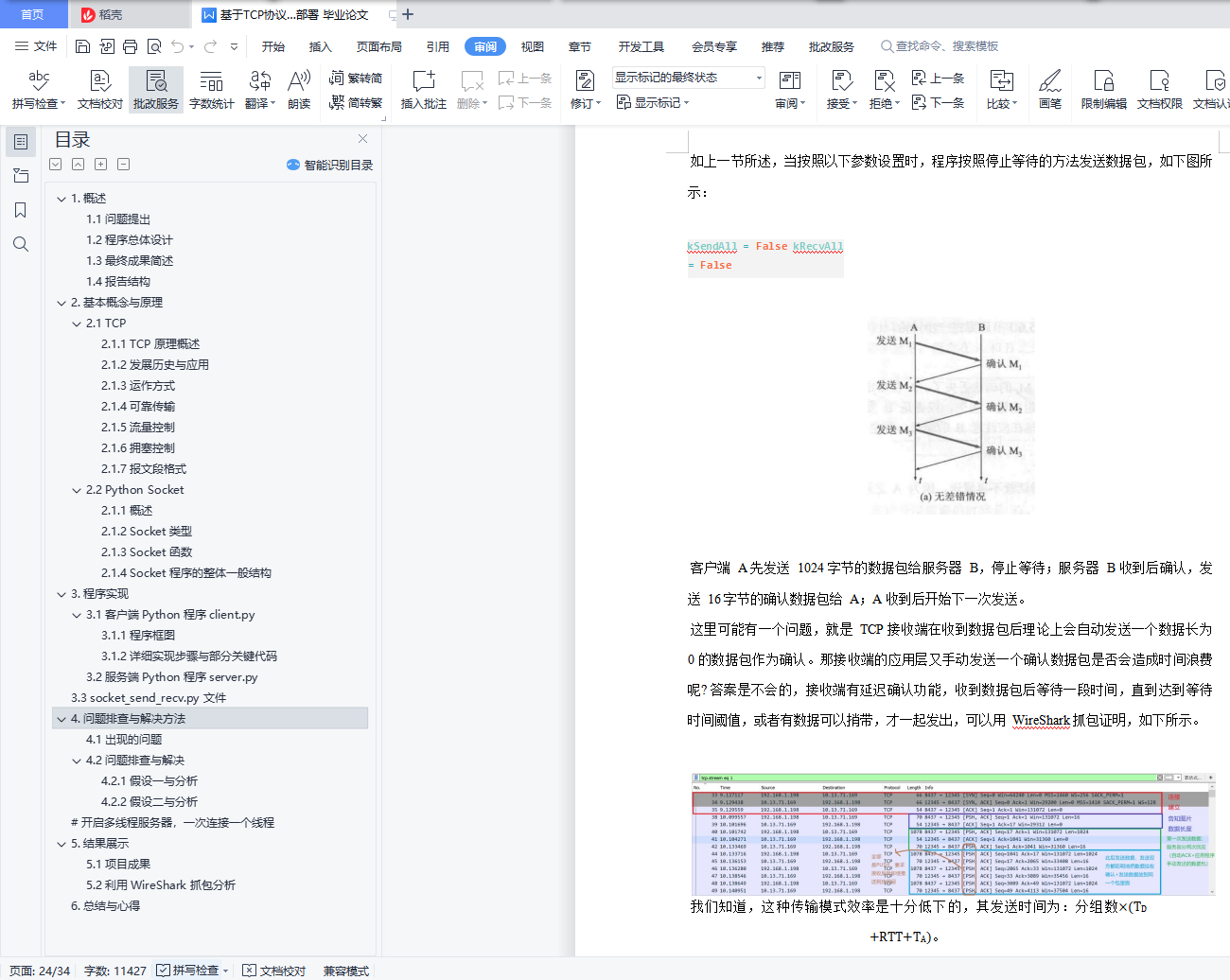 摘要:本次 Project 中,我们利用 TCP 协议、通过基于 Python 的 socket 的模块,实现了人群分布数据的传输与远程卷积神经网络的模型部署和识别应用。具体流程与功能包括:将本地笔记本和树莓派设备上的摄像头获取的视频流进行编码后上传至服务器;服务器端利用训练好的基于 Caffe 的 CNN 模型,计算出每帧图片的人群分布密度图;最后,服务器再用类似的方法将结果回传到本地客户端上并显示。目录基于 TCP 协议与 Python 中 Socket 模块的人群分布数据传输与远程 CNN 识别模型部署 11. 概述 21.1 问题提出 21.2 程序总体设计 31.3 最终成果简述 31.4 报告结构 32. 基本概念与原理 42.1 TCP 42.1.1 TCP 原理概述 42.1.2 发展历史与应用 42.1.3 运作方式 52.1.4 可靠传输 72.1.5 流量控制 102.1.6 拥塞控制 112.1.7 报文段格式 112.2 Python Socket 112.1.1 概述 122.1.2 Socket 类型 122.1.3 Socket 函数 122.1.4 Socket 程序的整体一般结构 143. 程序实现 153.1 客户端Python 程序client.py 153.1.1 程序框图 153.1.2 详细实现步骤与部分关键代码 163.2 服务端Python 程序server.py 183.3 socket_send_recv.py 文件 214. 问题排查与解决方法 234.1 出现的问题 234.2 问题排查与解决 264.2.1 假设一与分析 264.2.2 假设二与分析 26# 开启多线程服务器,一次连接一个线程 295. 结果展示 315.1 项目成果 315.2 利用WireShark 抓包分析 326. 总结与心得 34