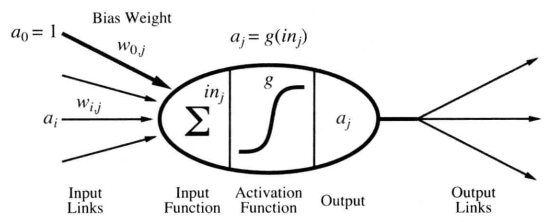 神经网络基本概念:神经网络由许多单元组成,单元之间通过有向的链进行连接。单元的结构非常简 单,如下图所示,若干结点的输出作为一个节点的输入,通过神经元输出。每一个边有一个权值,神经 单元的激活函数相同。