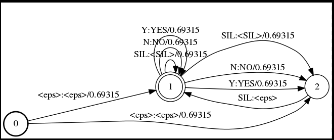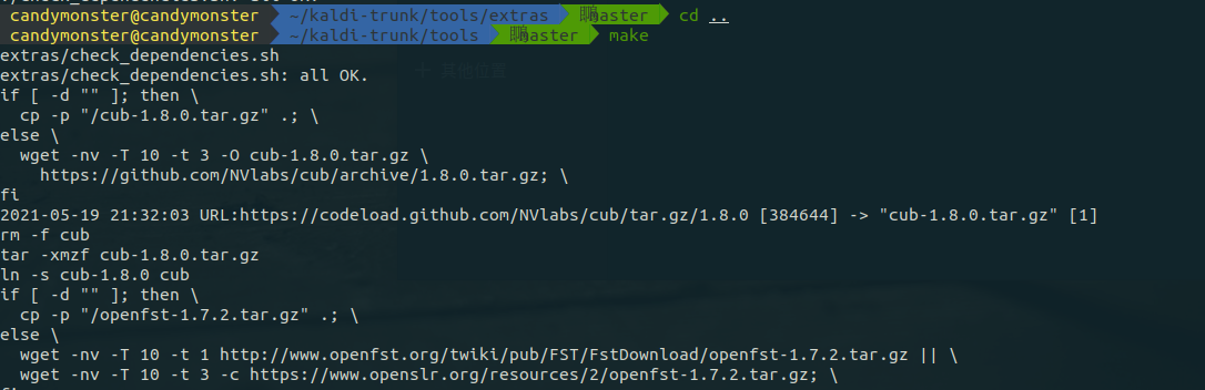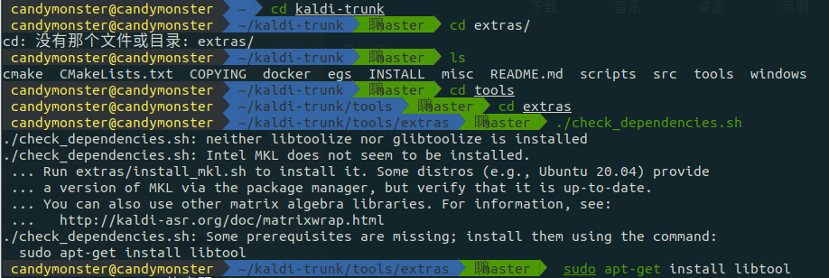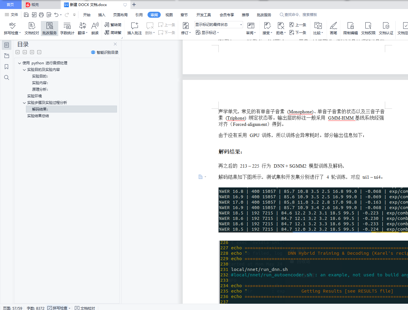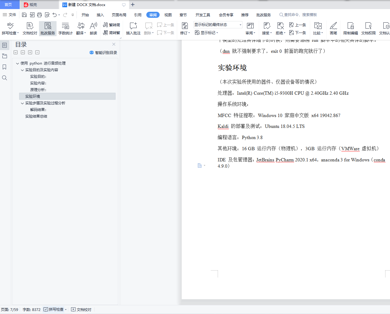 使用 python 进行音频处理目录使用 python 进行音频处理 1实验目的及实验内容 1实验目的: 1实验内容: 1原理分析: 1实验环境 6实验步骤及实验过程分析 8解码结果: 56实验结果总结 57实验目的及实验内容(本次实验所涉及并要求掌握的知识;实验内容;必要的原理分析)实验目的:使用 python 进行音频处理实验内容:学习音频相关知识点,掌握 MFCC 特征提取步骤,使用给定的 chew.wav 音频文件进行特征提取。音频文件在实验群里下载。部署 KALDI,简要叙述部署步骤运行 yes/no 项目实例,简要解析发音词典内容,画出初步的 WFST 图(按 PPT 里图的形式)。调整并运行 TIMIT 项目,将命令行输出的过程与 run.sh 各部分进行对应,叙述顶层脚本run.sh 的各部分功能(不需要解析各训练过程的详细原理)。原理分析:对 chew.wav 进行特征提取声音信号本是一维时域信号(声音信号随时间变化),我们可以通过傅里叶变换将其转换到频域上,但这样又失去了时域信息,无法看出频率分布随时间的变化。短时傅里叶(STFT)就是为了解决这个问题而发明的常用手段。所谓的短时傅里叶变换,即把一段长信号分帧、加窗,再对每一帧做快速傅里叶变换(FFT),最后把每一帧的结果沿另一个维度堆叠起来,得到类似于一幅图的二维信号形式。语音信号是不稳定的时变信号,但为了便于处理,我们假设在一个很短的时间内,如-40ms 内为一个稳定的系统,也就是 1 帧。但是我们不能简单平均分割语音,相邻的帧之间需要有一定的重合。我们通常以 25ms 为 1 帧,帧移为 10ms,因此 1 秒的信号会有 10 帧。