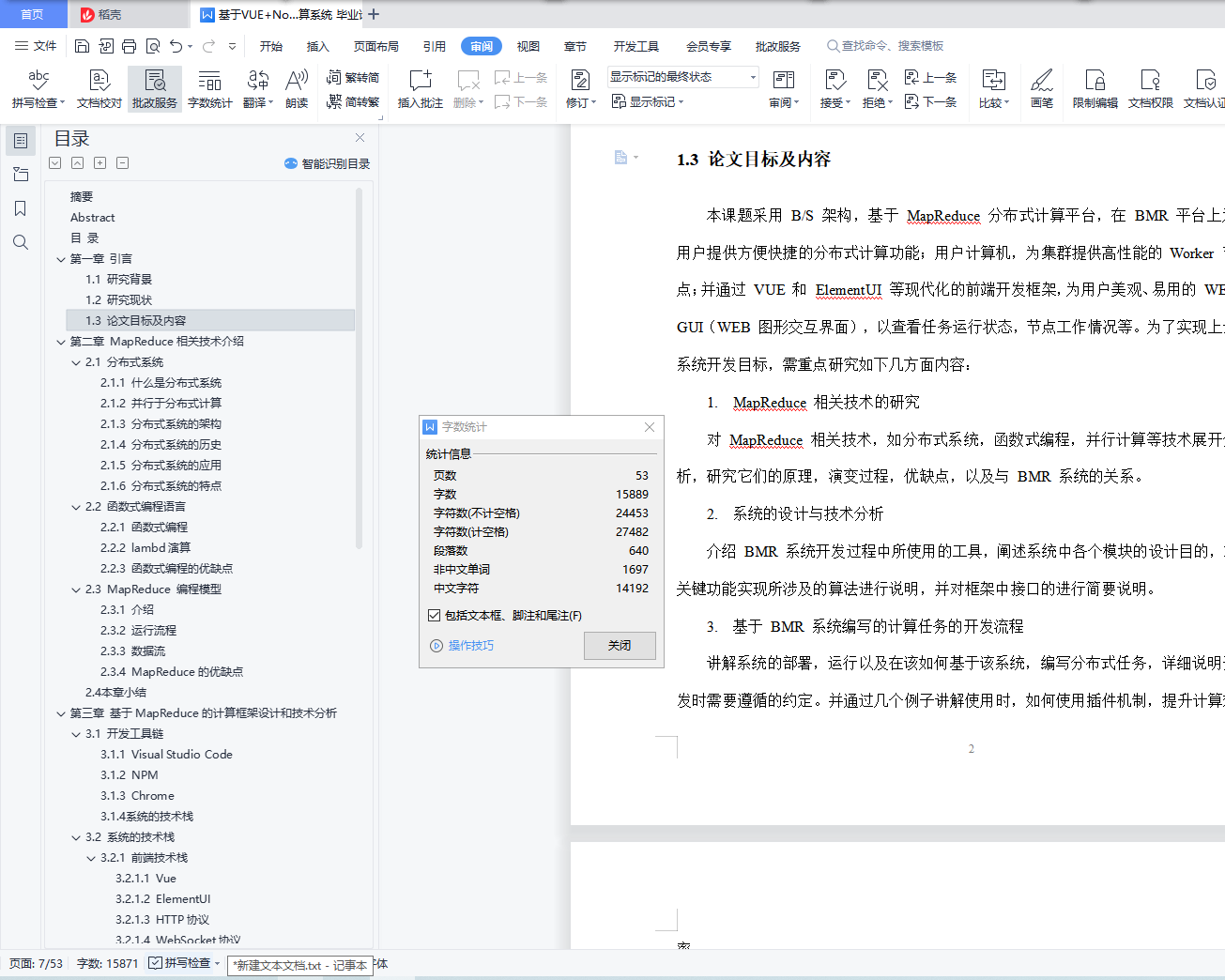 基于VUE+Node实现MapReduce的分布式计算系统 毕业论文+任务书+开题报告+答辩PPT+项目源码