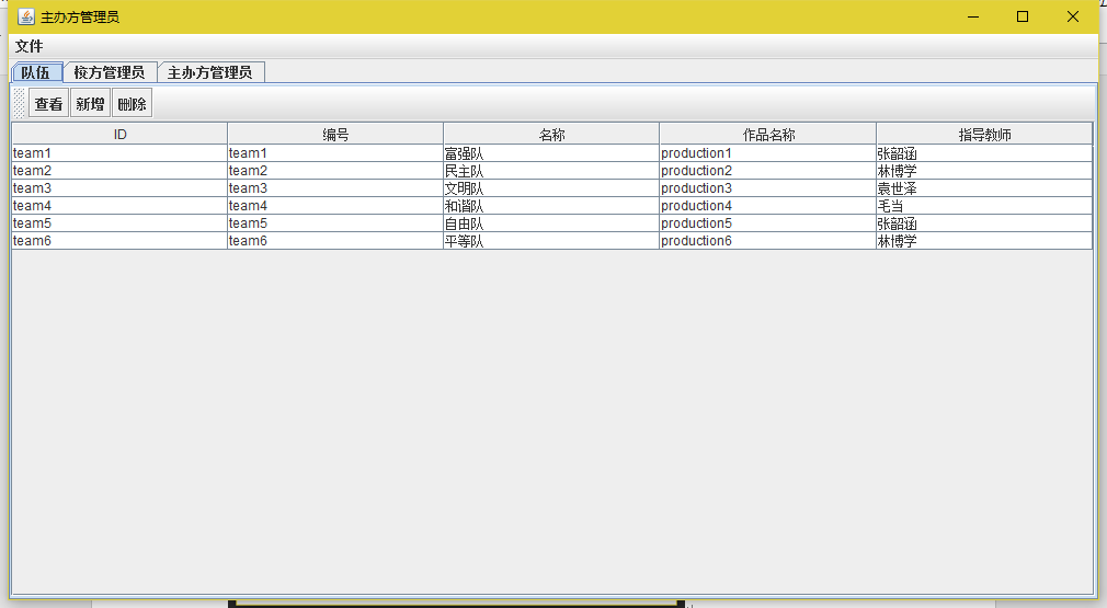 主办方信息管理模块:校方管理员的登录;增删查改删除队伍;增删查改校方管理员信息;增删查改主办方管理员信息。
