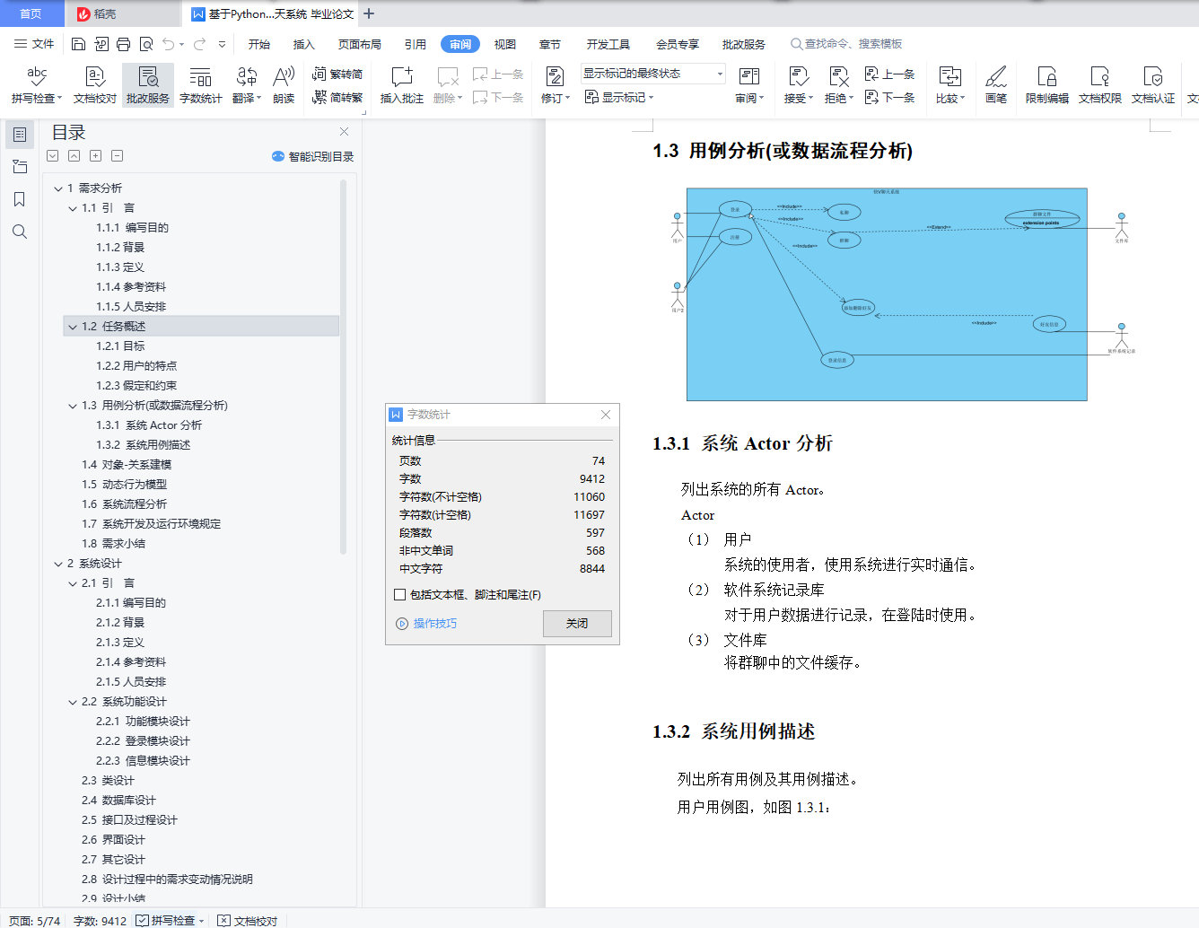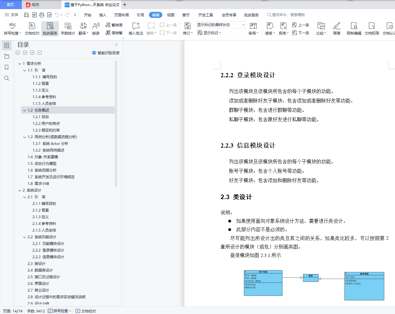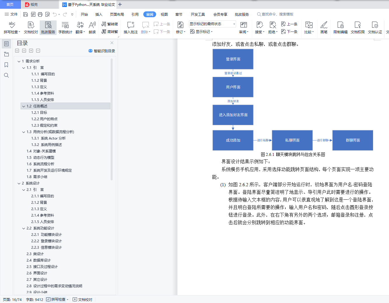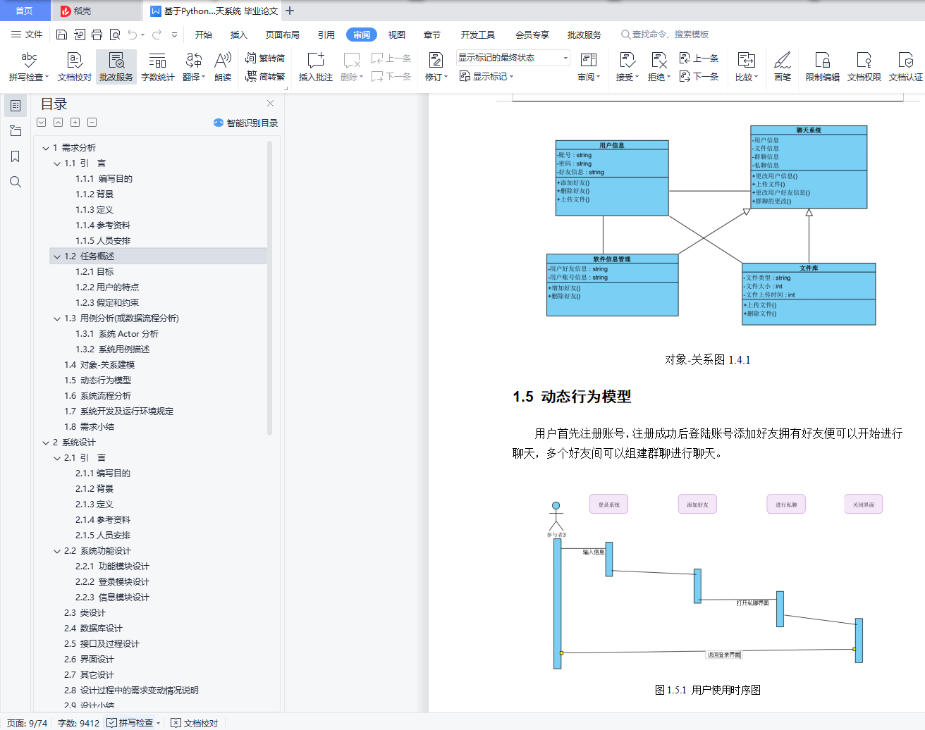 目 录1 需求分析 11.1 引 言 11.1.1 编写目的 11.1.2背景 11.1.3定义 21.1.4参考资料 21.1.5人员安排 21.2 任务概述 21.2.1目标 21.2.2用户的特点 31.2.3假定和约束 31.3 用例分析(或数据流程分析) 31.3.1 系统Actor分析 31.3.2 系统用例描述 41.4 对象-关系建模 61.5 动态行为模型 71.6 系统流程分析 81.7 系统开发及运行环境规定 91.8 需求小结 92 系统设计 102.1 引 言 102.1.1编写目的 102.1.2背景 102.1.3定义 102.1.4参考资料 112.1.5人员安排 112.2 系统功能设计 112.2.1 功能模块设计 112.2.2 ****模块设计 122.2.3 ****模块设计 122.3 类设计 122.4 数据库设计 142.5 接口及过程设计 152.6 界面设计 162.7 其它设计 192.8 设计过程中的需求变动情况说明 202.9 设计小结 203 系统实现 213.1人员安排 213.2 系统通用类实现 213.2.1 数据库通用类实现 223.2.2 其它通用类实现 223.3 AAA模块实现 233.3.1 AAA模块实现简介 233.3.2 AAA模块相关类实现 233.3.3 AAA模块文件及跳转关系 233.3.4 AAA模块程序流程 243.3.5 AAA模块实现界面 253.4 BBB模块实现 263.X 实现过程中的需求和设计变动情况说明 263.Y 实现小结 274 系统测试 284.1人员安排 284.2 系统通用类测试 284.2.1 数据库通用类测试 294.2.2 其它通用类测试 294.2.3 系统通用类测试报告 294.2.4 系统通用类调试过程 304.3 AAA模块测试 304.3.1 AAA模块白盒测试用例 304.3.2 AAA模块黑盒测试用例 304.3.3 AAA模块测试报告 304.4.4 AAA模块调试过程 314.4 BBB模块测试 314.X 系统集成测试 314.Y 系统测试小结 315 心得体会 321 需求分析说明:在进行分析时可以任意传统需求分析方法或面向对象分析方法,或者两者相结合,不局限于使用一种方法。(如果采用Scrum等敏捷过程开发的,可以不使用用例图等工具,但需要提交user story等各种能体现需求的材料)文档中每章图都需要配有相应的文字解释。本文档中的图按照章编号,如“1 引言”表示第一章,“1.1 编写目的”表示第一章第一节。第一章第一个图标号为“图1.1 ****图”,而第二个图标号为“图1.2 ****图”,写在图的下面,居中。本文档中的表也按照章编号,第一章第一个表标号为“表1.1 ****表”,而第二个表标号为“表1.2 ****表”,写在表的上面,居中。使用visio画用例时,Actor及用例的图示模具(用例图模具.vss)可以到BB平台下载。1.1 引 言1.1.1 编写目的该说明书旨在为写出软件开发的过程,满足对于实时通信有要求的用户。1.1.2背景我们软件系统叫做快V实时通信系统,参考市面上流行的即时聊天软件,主要功能涵盖私人间通讯模式,以及多人群聊模式,二者均是为了满足用户的社交、工作、学习需求,信息的正确、及时传递是用户的基本需求。特别地,私聊模式更注重点与点通讯的安全与隐秘,而群聊模式更注重信息的即时性,能够处理并发较高的场景。在即时通讯基础上,用户同样需要离线后的信息传递,通常以离线文件形式存在于通讯软件中,而群聊中的文件更是可以起到数据库的功能。数据的形式包括文本、图像、音视频等。1.1.3定义1.1.4参考资料1.1.5人员安排实时通信系统需求分析小组1.2 任务概述1.2.1目标设计完成简易的安全即时通讯系统,实现类似于QQ的聊天软件;1.2.2用户的特点普通的大众人群,需要实时聊天需求的人群。1.2.3假定和约束由于开发期限较短,UI的画布设计较少,对于产品开发过程中有些问题定义不清楚。