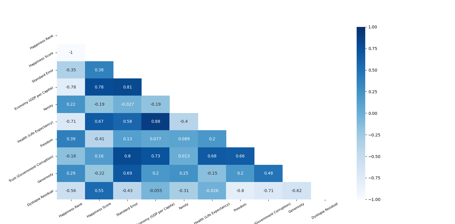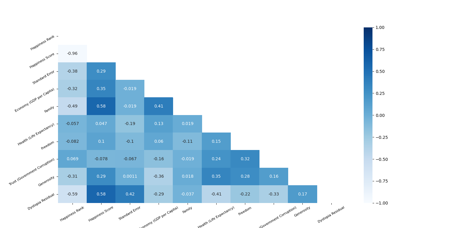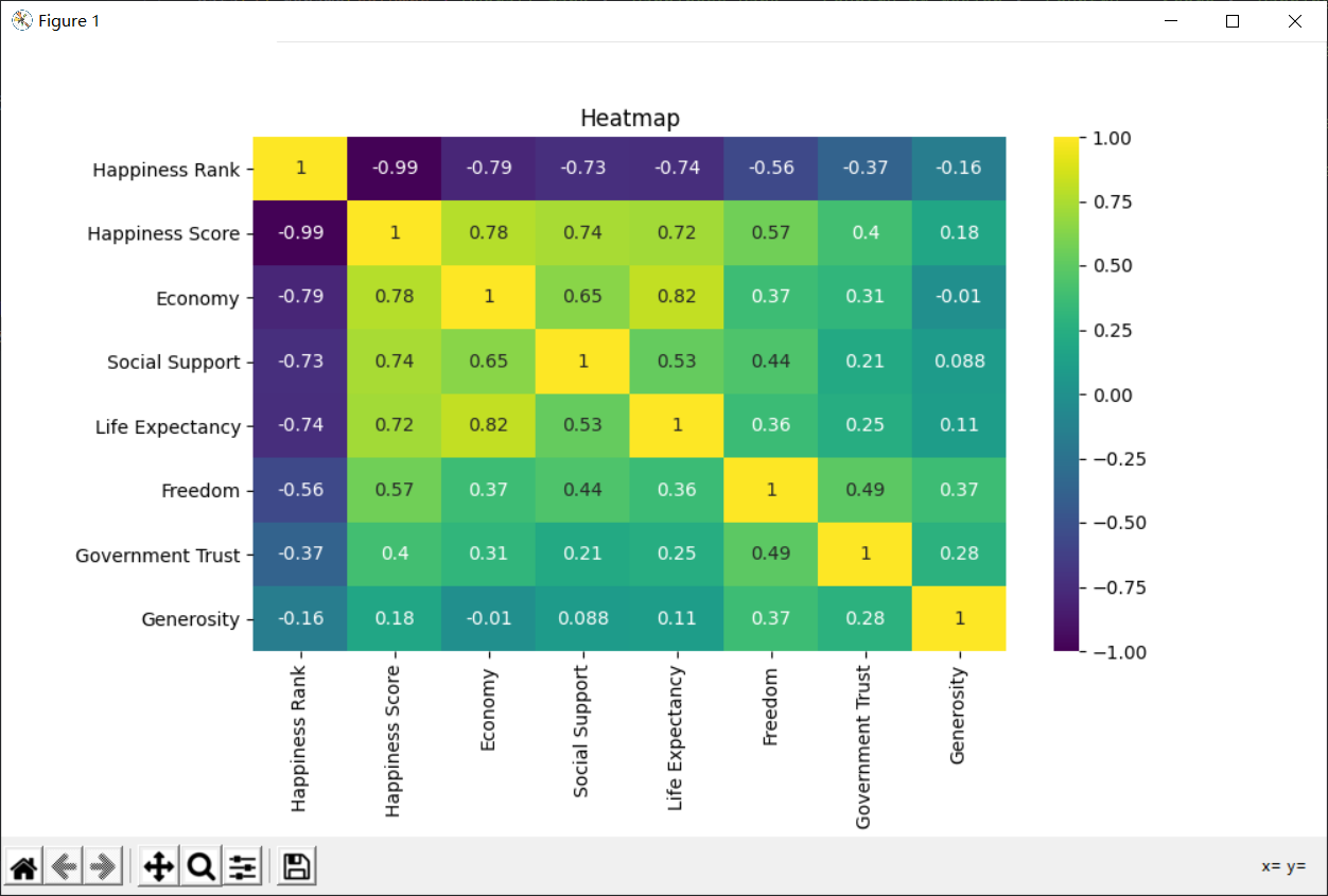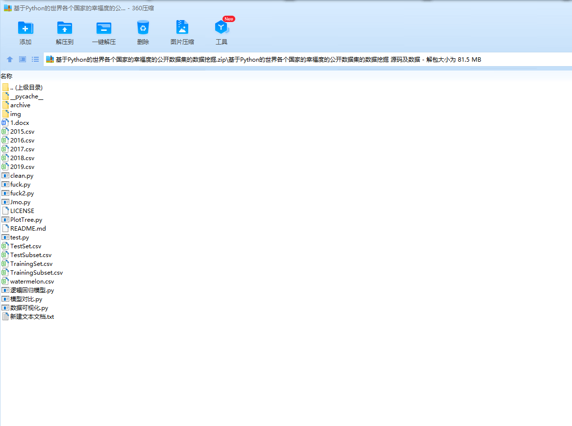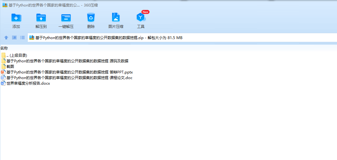 目录一. 问题背景 1二. 准备工作 2三. 具体实施 21.数据存储及基本加载 2# 数据整理到数组之中 22.数据清洗 2① 多余列清除 2② 列属性归一 3③ 空值处理 43.数据挖掘算法 6① 基本特征 6② 总体热力图分析 7③ 对指定数据的热力图分析 8④ 离散图分析 9⑤ 点线图分析经济与健康横向对比 10⑥ 地区划分得到幸福度指数 12⑦ 深究每个地区的最大因素: 15四. 总结汇总 16一.问题背景《世界幸福报告》是对全球幸福状况的一次里程碑式的调查。第一份报告于2012年发布,第二份于2013年发布,第三份于2015年发布,第四份报告于2016年更新。3月20日,在联合国举行的庆祝国际幸福日的活动上,根据155个国家的幸福水平,发布了《2017年世界幸福》。随着各国政府、组织和民间社会越来越多地使用幸福指数来指导其决策,该报告继续得到全球的认可。经济学、心理学、调查分析、国家统计、卫生、公共政策等领域的权威专家描述了如何有效地利用幸福感来评估国家的进步。这些报告回顾了当今世界的幸福状况,并展示了新的幸福科学如何解释个人和国家在幸福方面的差异。二.准备工作小组选择的公开数据集为kaggle上的公开数据集Factors affecting happiness,即一个关于各个国家的幸福度的公开数据集,从2015-2019每一年都有一个数据集。列出了各个国家的幸福度指数,经济情况,健康,宗教信仰,家庭等。三.具体实施1.数据存储及基本加载1)原理分析通过os库提供的getcwd方法返回当前工作目录,后面跟上每个数据集的相对路径,得到每个数据集的路径。而为open方法指定路径以及编码方式(此处为utf-8)即可获取到数据集文件。同样地,pandas库也为我们提供了专为csv文件提供的读取方法read_csv。为了后续的方便整理和调用,这里将每一年的数据全部放到一个数组之中,通过对下标的引用即可获取到数据集。