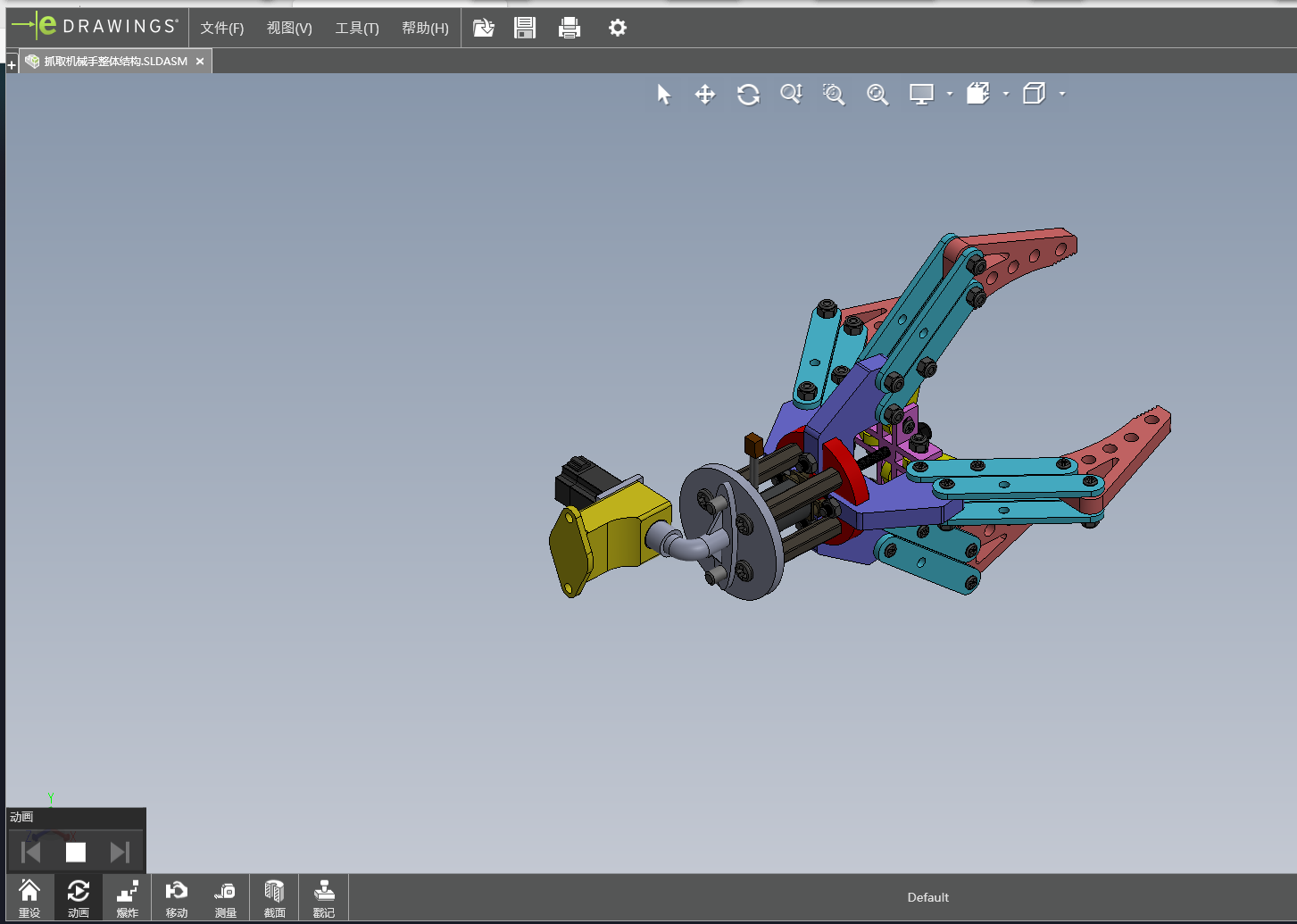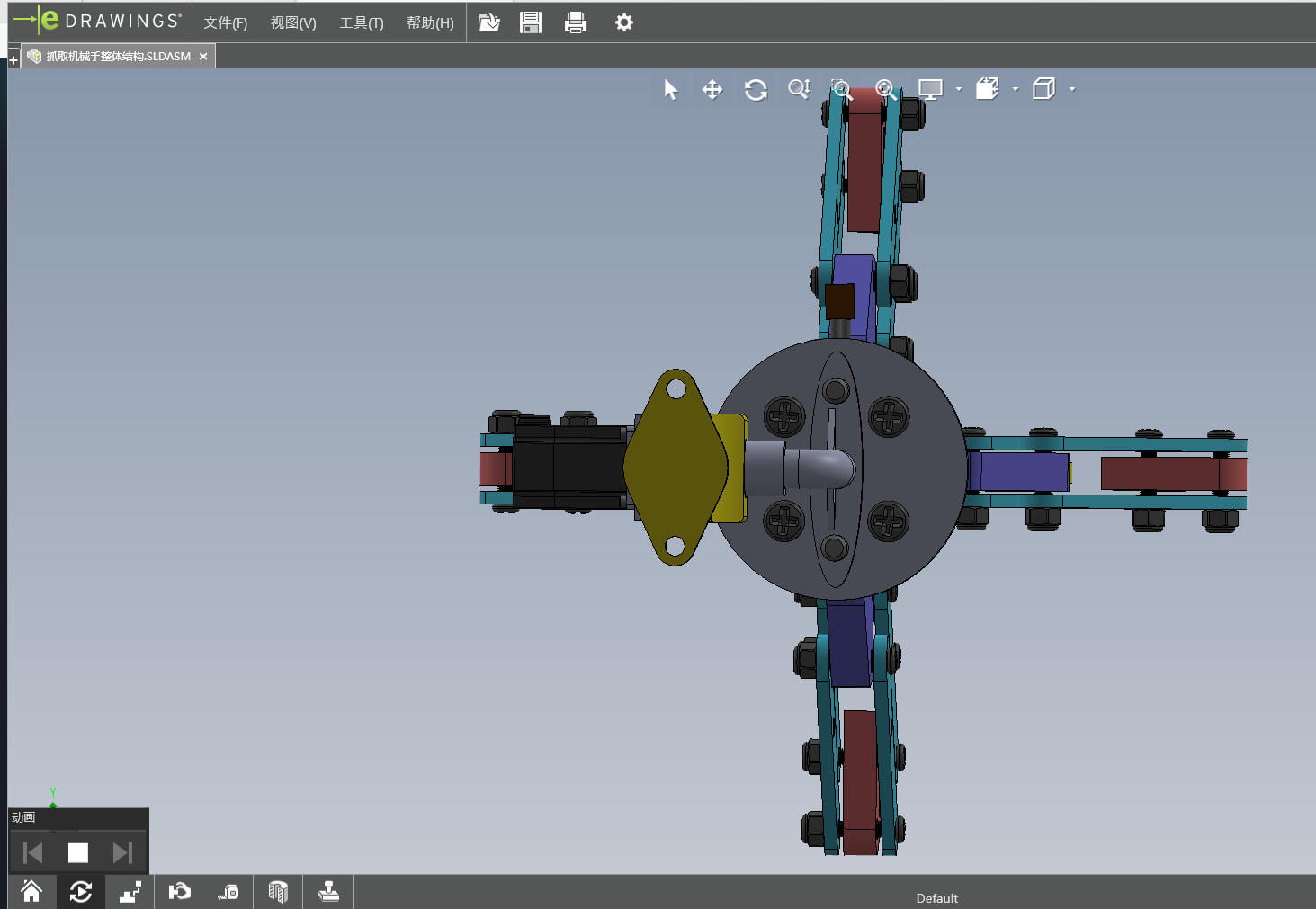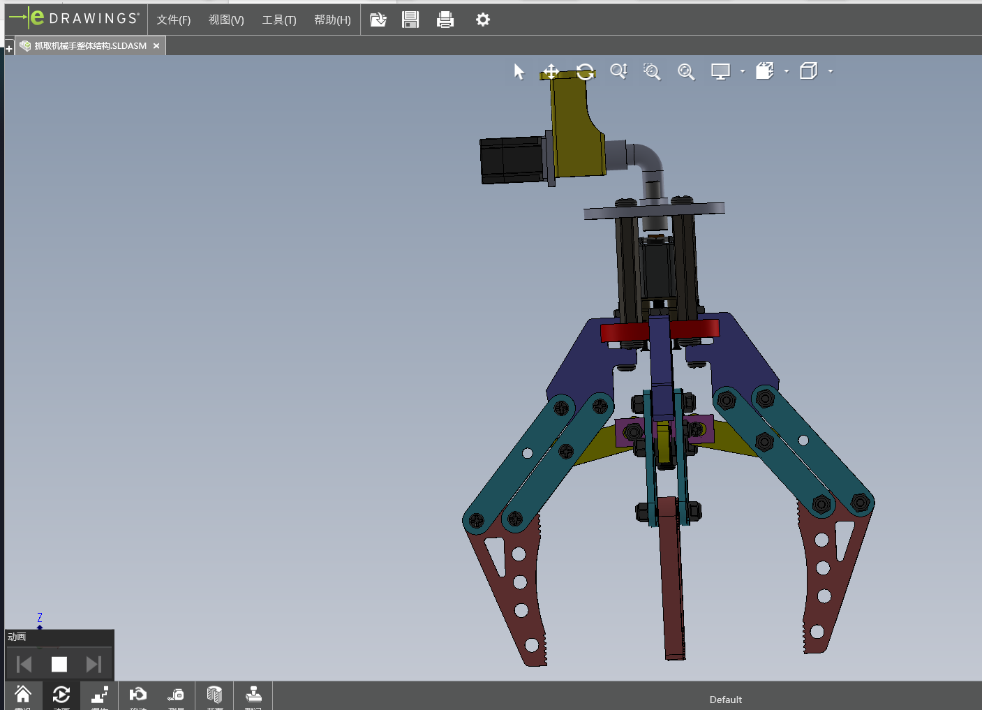 The subject of this design is to grasp the crankshaft manipulator, because the structure of the crankshaft is irregular, so in the design of the manipulator, the design is similar to the structure of human hands, to meet the design of grasping the irregular crankshaft, to achieve the stability and reliability of the work. It can prevent the objects from bumping, falling, unstable grasping and uneven force in the process of grasping. Through consulting the relevant design literature and information, the manipulator with four claw structure is selected for design. The advantage of the design is that the structure of binding sample has high adaptability and high working efficiency, which can meet the requirements of grasping the crankshaft and carrying objects. The structure is the same as the ability of manual handling, which can realize the design advantages of mechanized transmission. In the design of the overall structure, the ability of comprehensive use of machinery, compact structure and light weight are considered. In order to achieve the versatility of the manipulator, this design is mainly based on the four claw manipulator. Through the use of SolidWorks software to draw the structure of the four claw manipulator, the overall structure of the design, drawing two-dimensional engineering drawings.