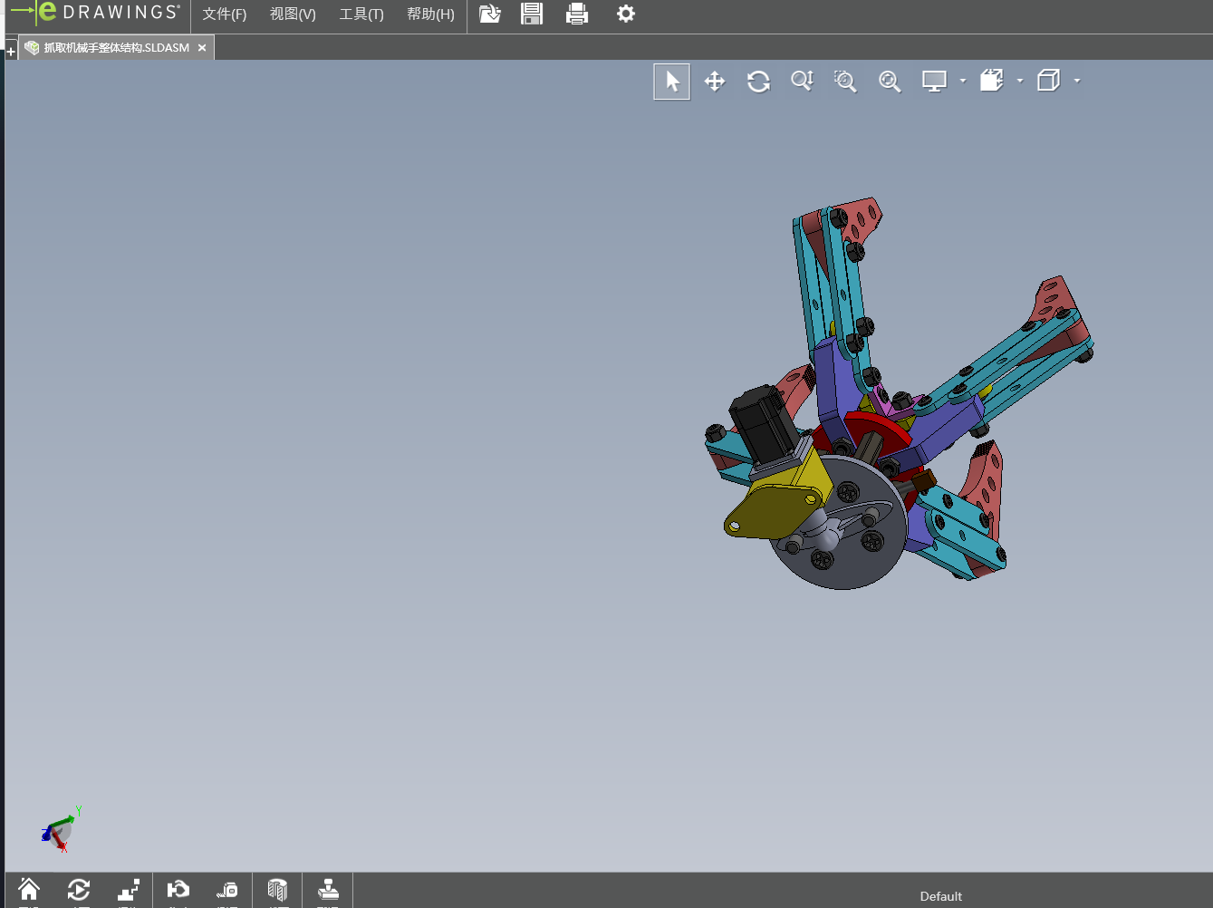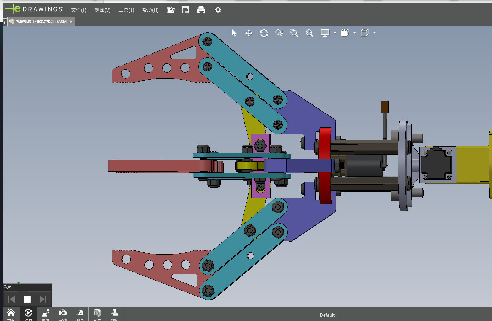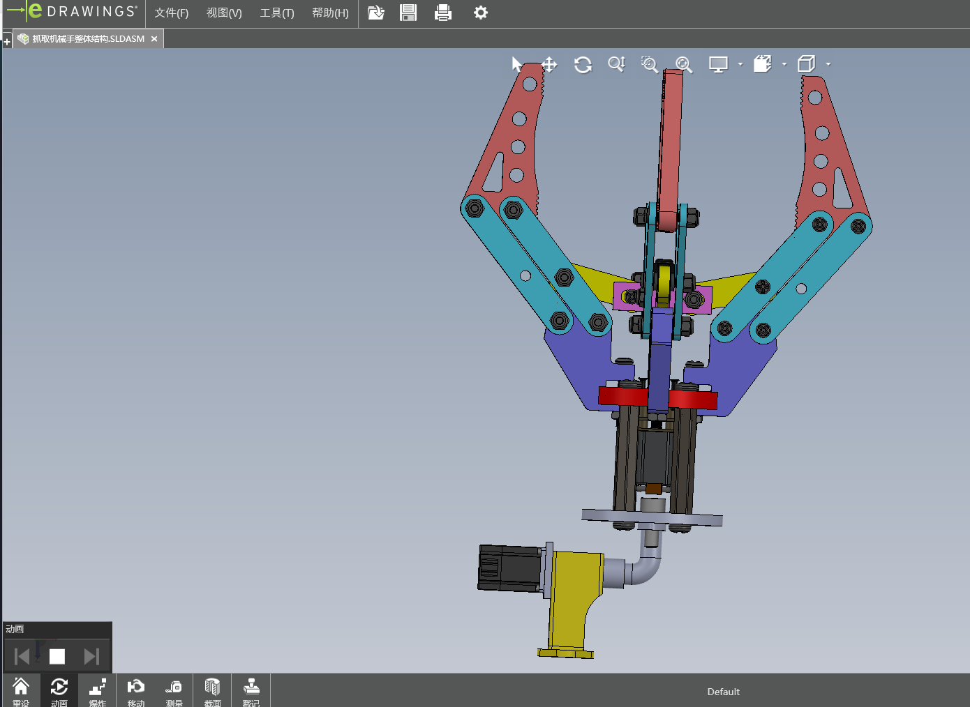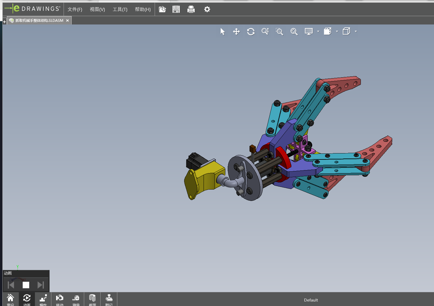 The subject of this design is to grasp the crankshaft manipulator, because the structure of the crankshaft is irregular, so in the design of the manipulator, the design is similar to the structure of human hands, to meet the design of grasping the irregular crankshaft, to achieve the stability and reliability of the work. It can prevent the objects from bumping, falling, unstable grasping and uneven force in the process of grasping. Through consulting the relevant design literature and information, the manipulator with four claw structure is selected for design. The advantage of the design is that the structure of binding sample has high adaptability and high working efficiency, which can meet the requirements of grasping the crankshaft and carrying objects. The structure is the same as the ability of manual handling, which can realize the design advantages of mechanized transmission. In the design of the overall structure, the ability of comprehensive use of machinery, compact structure and light weight are considered. In order to achieve the versatility of the manipulator, this design is mainly based on the four claw manipulator. Through the use of SolidWorks software to draw the structure of the four claw manipulator, the overall structure of the design, drawing two-dimensional engineering drawings.
