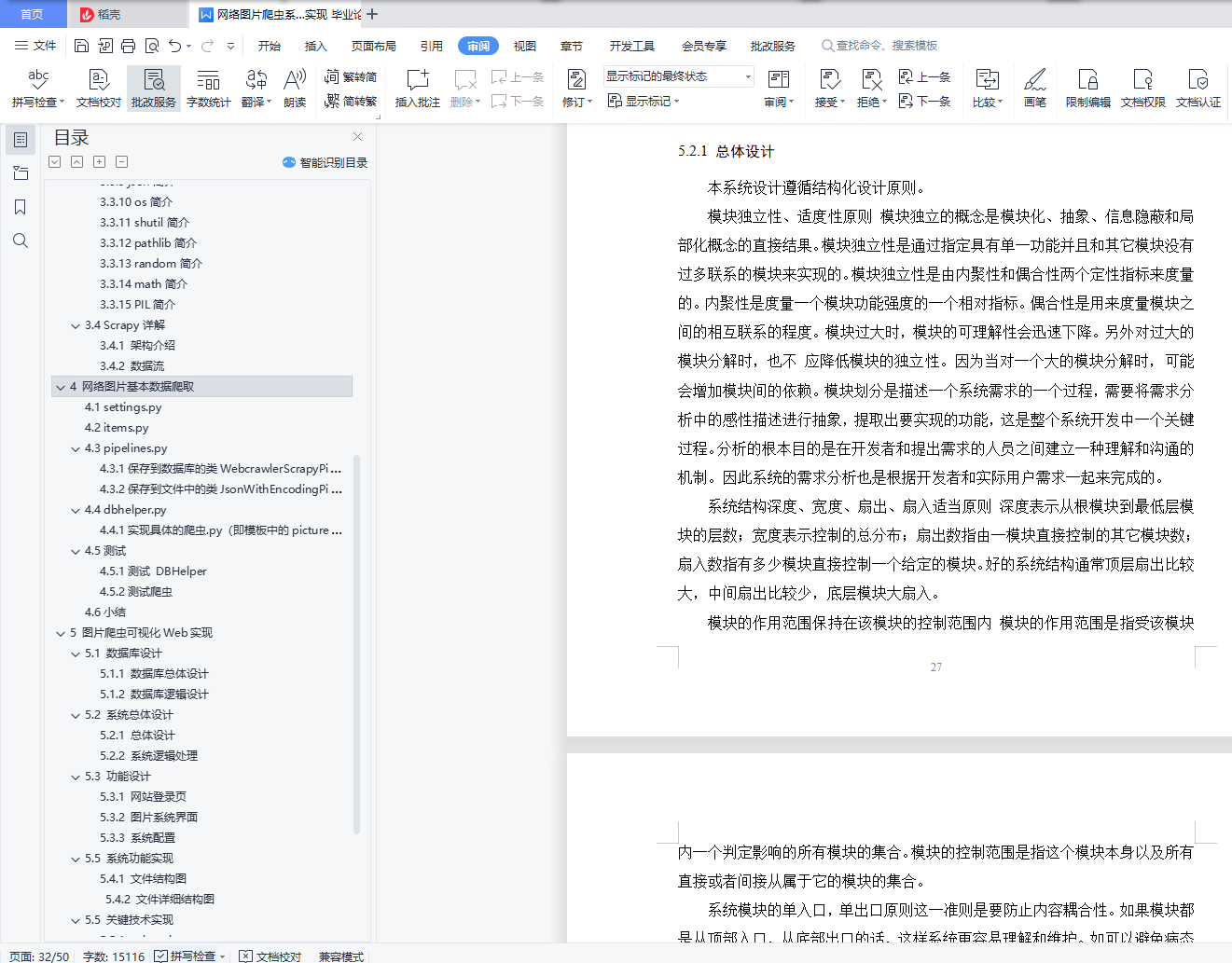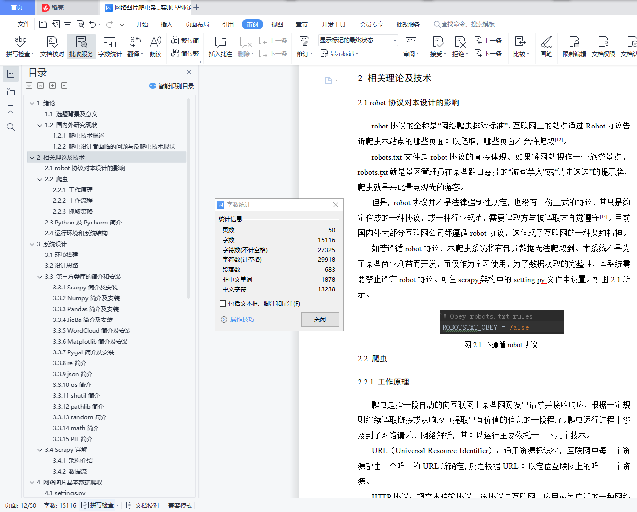 网络图片爬虫系统的设计和实现摘 要大数据时代,数据资源具有广阔的特点。下载图片和保存图片主要是通过Python图片下载来实现的。目前,基于Python的图片下载和图片存储及技术实现是Python图片下载的主要目的,Python可以为图片下载和图片存储提供思路,在体现数据价值方面发挥着重要作用。因此,可以看出Python在研究图像下载和图像存储的过程中具有显着的应用价值。互联网是一个资源丰富、信息海量的数据库,其中包含着大量的文字图画和每天更新的内容,如何检索和呈现这些数据以供人们使用是非常重要的。本文介绍了利用网络爬虫抓取图片内容的研究现状、技术方法、故障排除等,希望对以后的研究人员有所参考。进行图像主题爬虫的设计和研究,采用基于文本内容的启发式方法,通过图像文件的锚文本及其上下文来实现主题相关性判断。相关图片资源。对网页也实现了主题相关性判断,以更好地引导爬虫的爬取路径。基于Python 的设计让您可以快速高效地捕获网站数据,Pandas 工具提供简单灵活的数据清理和分析,Python Matplotlib 工具包可以轻松将图像下载结果保存为图形图像。实验表明,该系统可以达到一定的优化效果,为实现定向目标图像信息获取奠定了良好的基础。关键词:Python;爬虫;网络图片爬虫;图片下载;图片保存Design and implementation of the network picture crawler systemAbstractIn the era of big data, data resources have broad characteristics.Downloading images and saving images is mainly achieved through Python image download.At present, Python-based image download and image storage and technology implementation are the main purpose of Python image download. Python can provide ideas for image download and image storage, and plays an important role in reflecting the value of data.Therefore, it can be seen that Python has significant application value in studying the process of studying image downloading and image storage.The Internet is a resource-rich database with massive information, which contains a large number of text pictures and daily updated content. How to retrieve and present this data for people's use is very important.This paper introduces the research status, technical methods, troubleshooting of the Internet crawler, hoping to have some reference to the future researchers.To design and study the image subject crawler, using a heuristic method based on the text content to realize the subject relevance judgment through the anchor text and its context of the image file.Related Picture Resources.Theme relevance judgment is also realized on the web page to better guide the crawler crawling path.The Python-based design allows you to capture website data quickly and efficiently, the Pandas tools provide simple and flexible data cleaning and analysis, and the Python Matplotlib toolkit can easily save image download results as graphical images.Experiments show that the proposed system can achieve certain optimization effect and lay a good foundation for the acquisition of directional target image information.Key words: Python; crawler; network picture crawler; picture download; picture save目 录1 绪论 11.1 选题背景及意义 11.2 国内外研究现状 11.2.1 爬虫技术概述 11.2.2 爬虫设计者面临的问题与反爬虫技术现状 32 相关理论及技术 72.1 robot协议对本设计的影响 72.2 爬虫 72.2.1 工作原理 72.2.2 工作流程 82.2.3 抓取策略 82.3 Python及Pycharm简介 82.4运行环境和系统结构 93 系统设计 93.1环境搭建 93.2设计思路 103.3 第三方类库的简介和安装 113.3.1 Scarpy简介及安装 113.3.2 Numpy简介及安装 123.3.3 Pandas简介及安装 123.3.4 JieBa简介及安装 133.3.5 WordCloud简介及安装 133.3.6 Matplotlib简介及安装 133.3.7 Pygal简介及安装 133.3.8 re简介 133.3.9 json简介 143.3.10 os简介 143.3.11 shutil简介 143.3.12 pathlib简介 143.3.13 random简介 143.3.14 math简介 143.3.15 PIL简介 143.4 Scrapy详解 153.4.1 架构介绍 153.4.2 数据流 164 网络图片基本数据爬取 174.1 settings.py 174.2 items.py 184.3 pipelines.py 184.3.1保存到数据库的类 WebcrawlerScrapyPipeline(在 settings 中声明) 184.3.2保存到文件中的类 JsonWithEncodingPipeline(在 settings 中声明) 194.4 dbhelper.py 204.4.1实现具体的爬虫.py(即模板中的 pictureSpider_demo.py 文件) 214.5测试 224.5.1测试 DBHelper 224.5.2测试爬虫 234.6小结 235 图片爬虫可视化Web实现 245.1 数据库设计 245.1.1 数据库总体设计 245.1.2 数据库逻辑设计 245.2 系统总体设计 275.2.1 总体设计 275.2.2 系统逻辑处理 285.3 功能设计 295.3.1 网站登录页 295.3.2 图片系统界面 295.3.3 系统配置 305.5 系统功能实现 325.4.1 文件结构图 325.4.2 文件详细结构图 335.5 关键技术实现 335.5.1 web.xml 335.5.2 数据库db_shopSystem连接部分 375.5.3 定时任务扫秒xml文件获取爬虫接口数据 385.6 调试过程中的常见错误 405.6.1 JDK配置错误 405.6.2 SQL空指针异常 415.6.3 数据库连接错误 416 总结 42致 谢 43参考文献 44